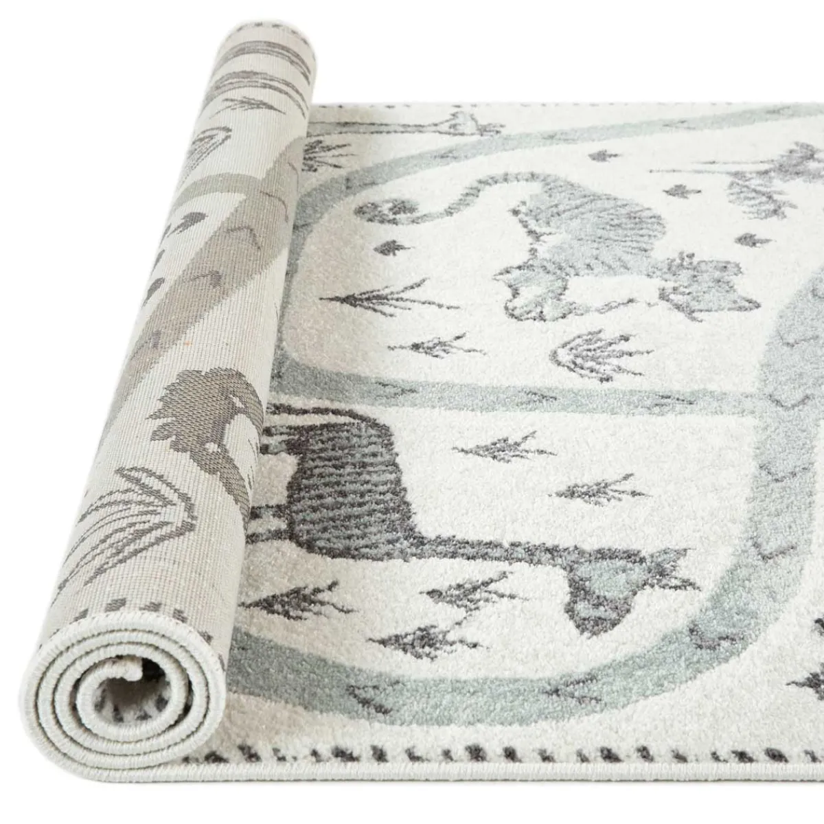 Alfombra Gio Savana Gris | Descubre la colección textil hôma kids. ¡Soluciones de decoración y confort con estampados únicos y mágicos! Cortinas, cojines, alfombras, mantas y un sinfín de propuestas agradables para el bebé y los niños | Color: Gris | Medidas: 133x190cm | Material: Poliolefina