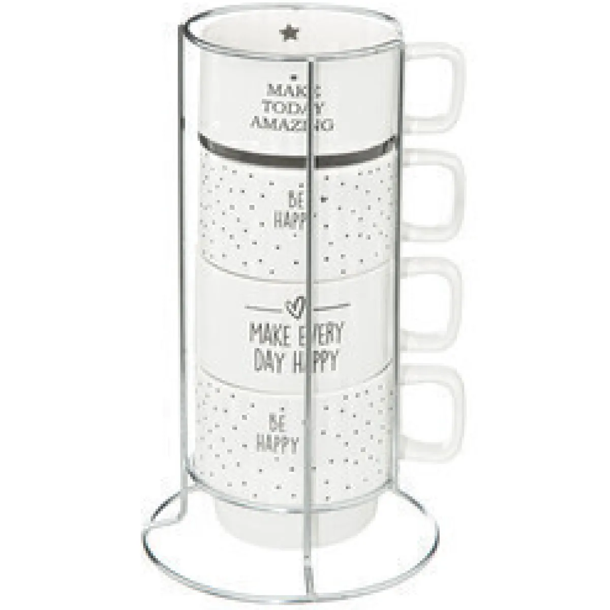 Juego 4 tazas HAPPY con soporte 22cl | Todo lo que tu mesa necesita está en homastores.com, echa un vistazo a nuestra colección de vajillas, vasos, cubiertos, posavasos, soportes, etc. ¡Sirve con Happy Home Living, y todo sabrá mucho mejor! | Color: Blanco, Gris | Medidas: 7.2x8cm | Material: Cerámica | Capacidad: 22cl | Marca: Secret D’Gourmet