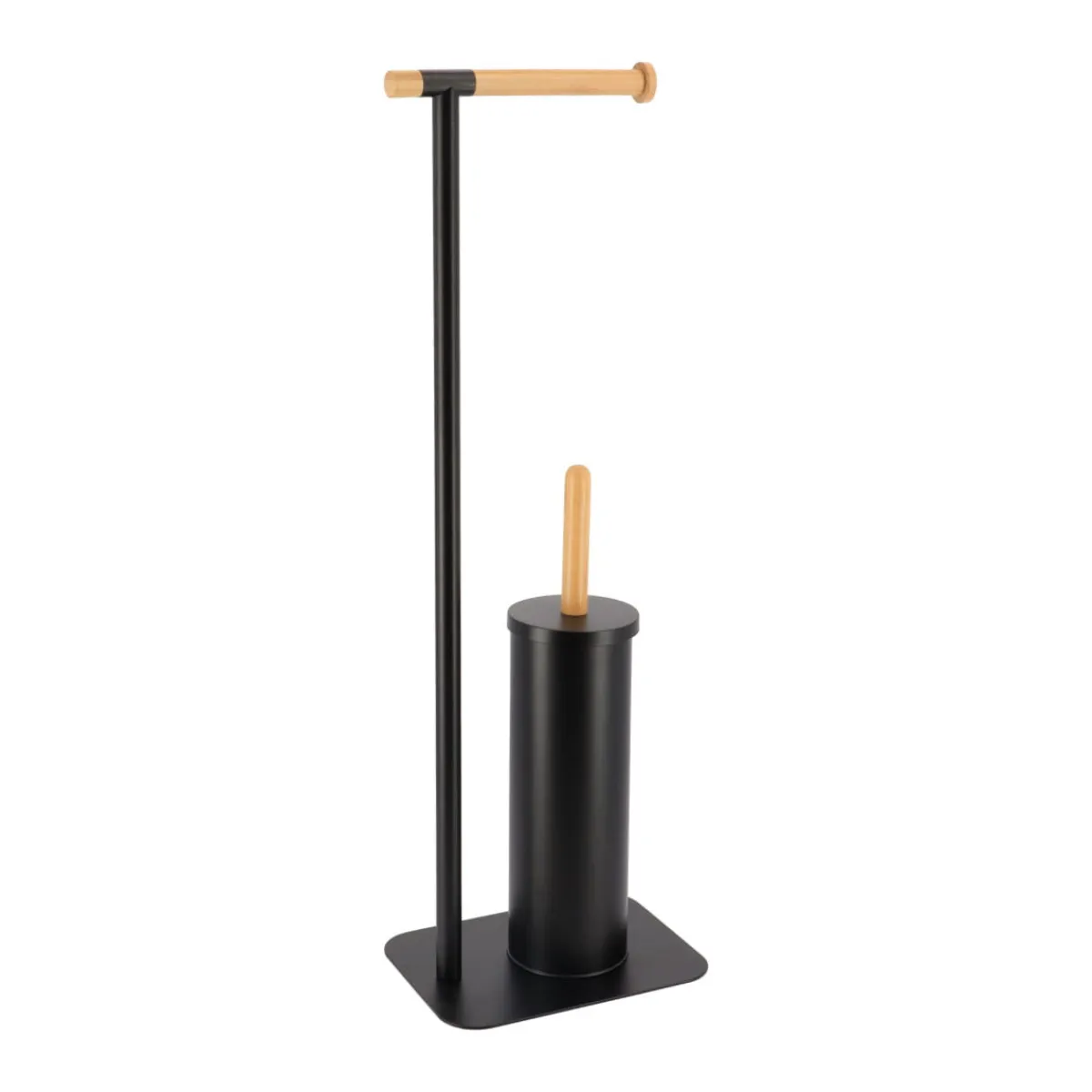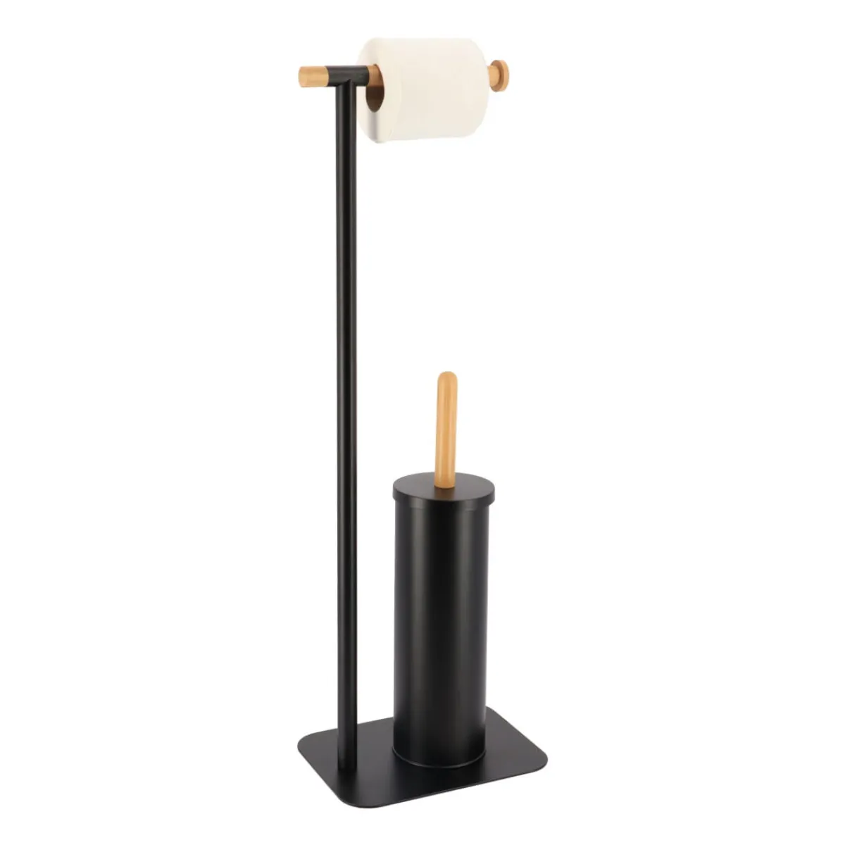 Portarrollos Con Escobilla Metal/Bambú | Los accesorios y la organización del baño son esenciales para que tus rutinas más personales te traigan todo el bienestar que te mereces. ¡Conoce nuestra colección de accesorios para el baño! | Color: Negro, Natural | Medidas: 69.5x16x22cm | Material: Metal, Bambú