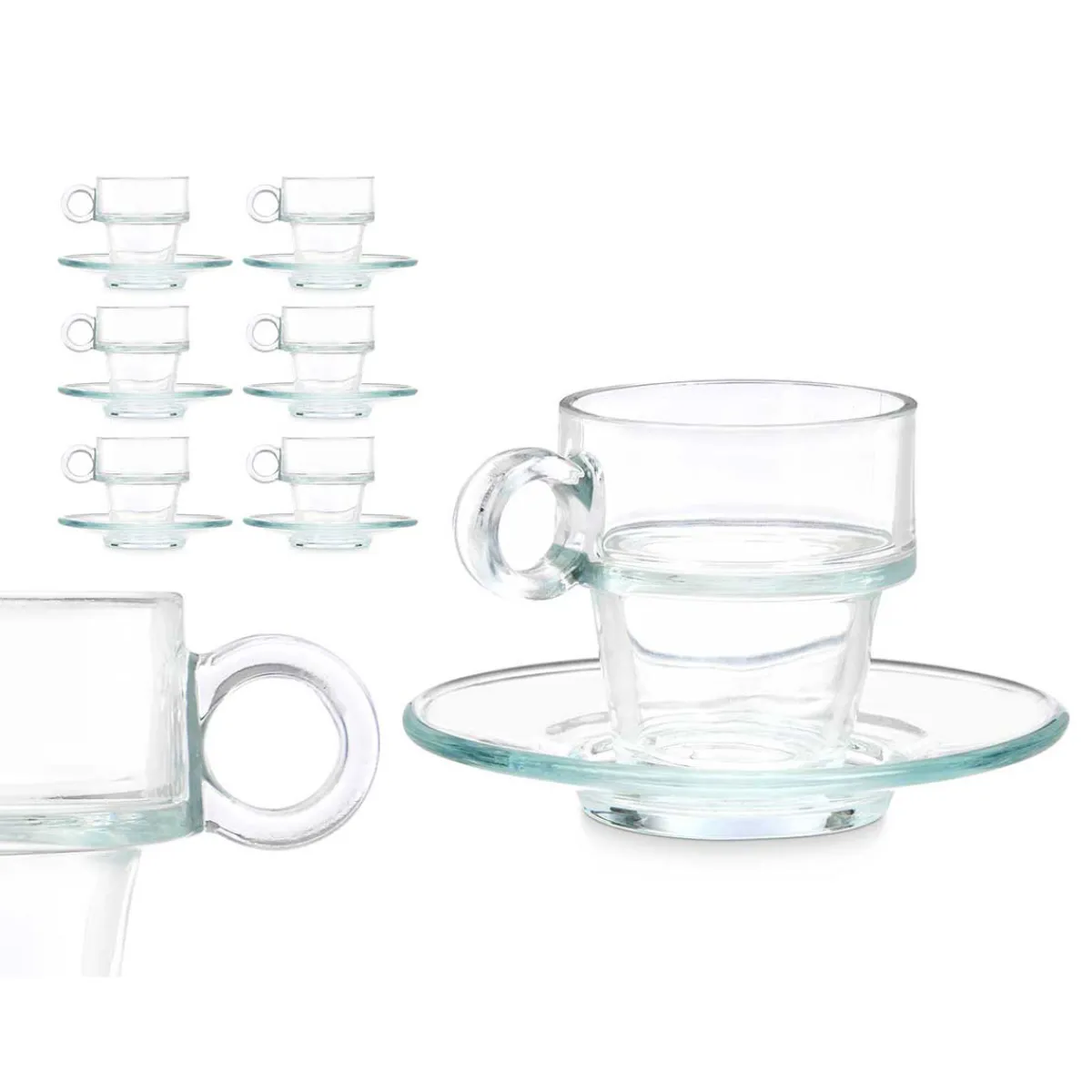 Taza De Café Con Plato 10Cl | 6.5x6x6cm | Todo lo que tu mesa necesita está en homa.es, echa un vistazo a nuestra colección de vajillas, vasos, cubiertos, posavasos, soportes, etc. ¡Sirve con Happy Home Living, y todo sabrá mucho mejor! | Color: Transparente | Medidas: 6.5x6x6cm | Material: Vidrio | Capacidad: 10cl
