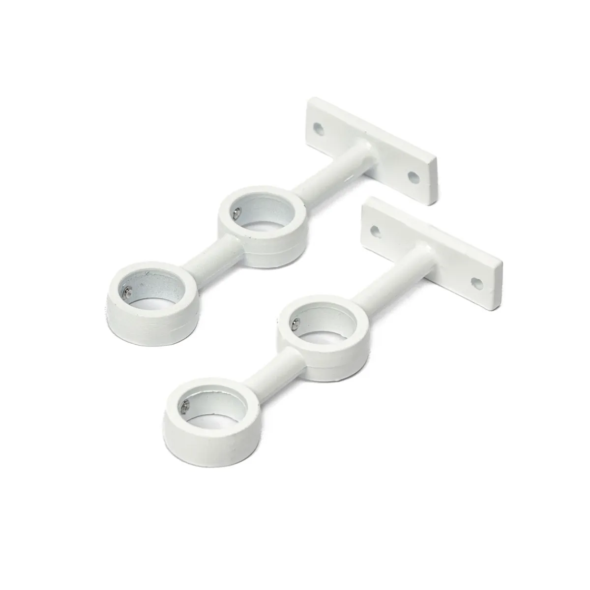 Juego 2 Soportes Dobles Para Barra Cortina | D. 28cm | Adorna tus ventanas y garantiza tu intimidad al máximo. Encuentra todos los accesorios para colgar tus cortinas y completar la decoración con el estilo que más te gusta. Contamos con diferentes opciones de soportes, barras de cortina, barras de extensión, rieles que se ajustan a la longitud, al contorno y a las esquinas de cada ventana. También disponemos de una selección de ganchos, anillas, remates todo esto en diferentes colores y materiales | Color: Blanco | Medidas: 28cm