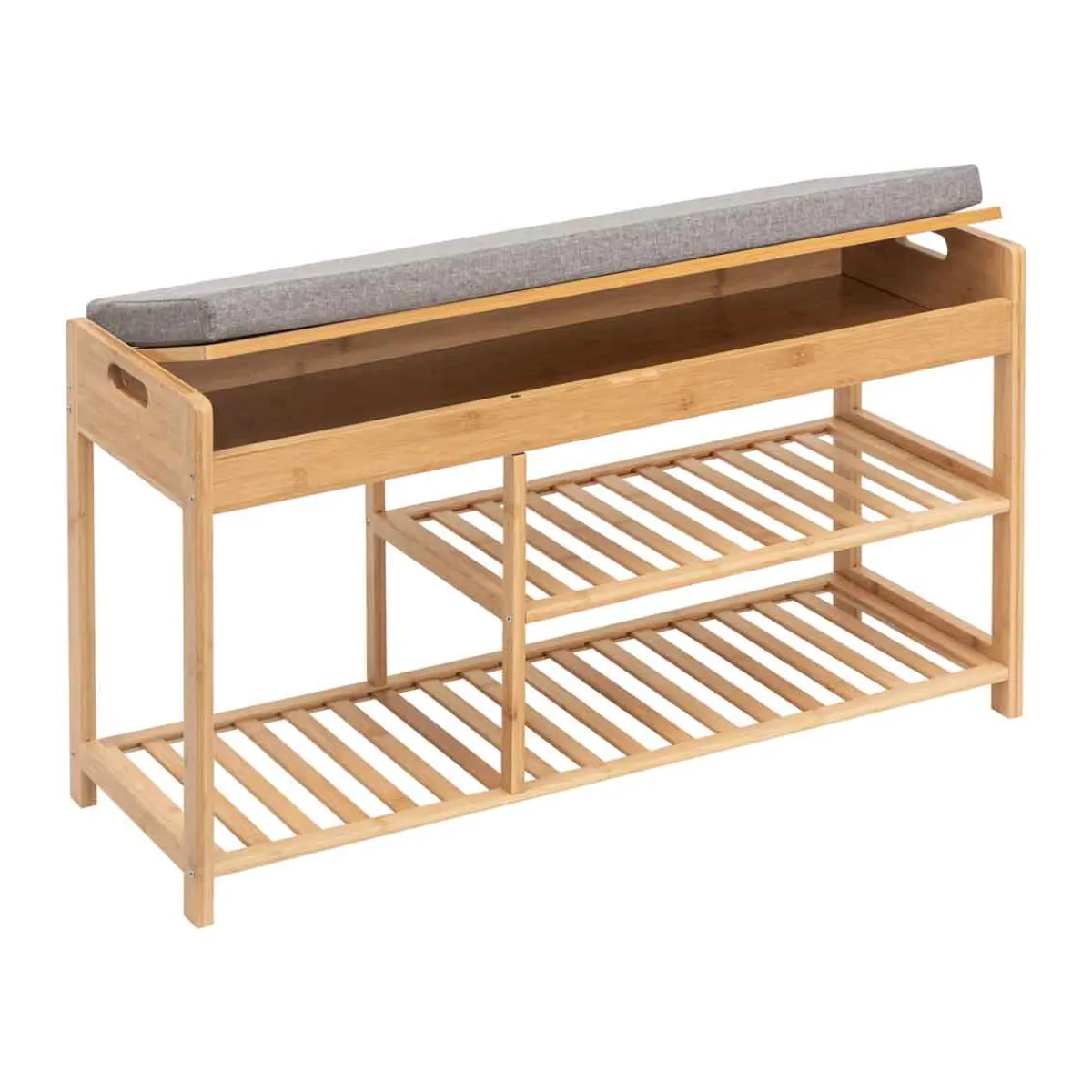 Banco con almacenaje de bambú | 46x30x80cm | Conoce este y más artículos que tenemos disponibles para tu closet . Almacenar y organizar tus armarios y roperos nunca fue tan fácil. Descubre la gama de organización hôma. | Color: Beige | Medidas: 46x30x80cm | Material: Bambú