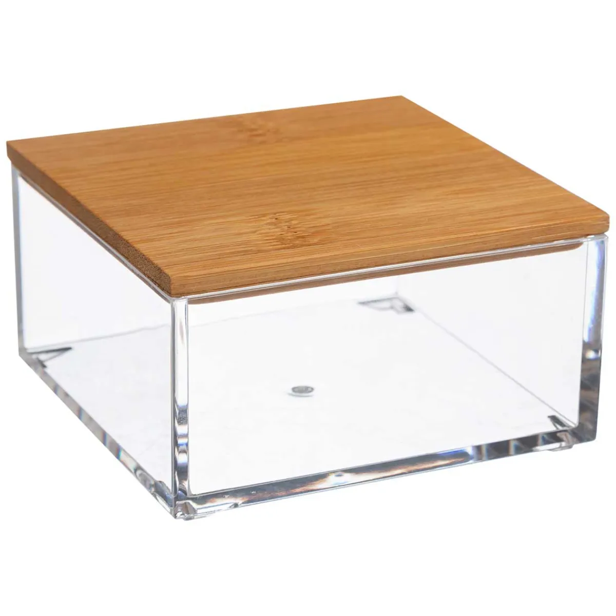 5five Accesorios De Lavabo>Joyero Acrílico Con Tapa De Bambú