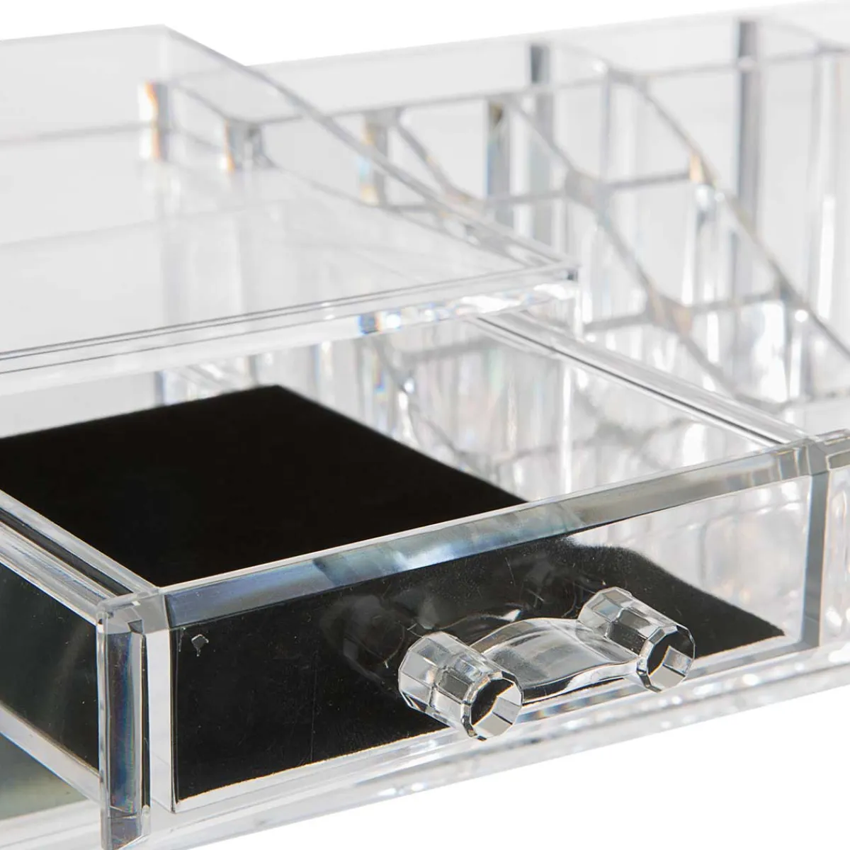 Organizador De Maquillaje Con 2 Cajones Y Compartimentos | 2 Cajones | Material: Acrílico | Medidas: 10x30x16cm