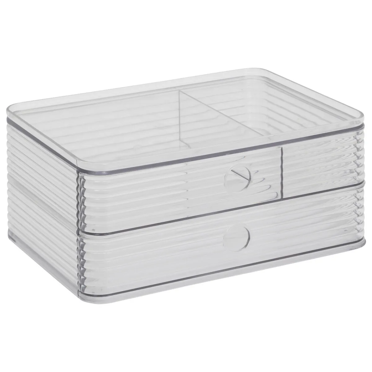 Organizador con 2 cajones GAMME PLASTOR 10×23,3×16 | Los accesorios de baño y organización son esenciales para que sus rutinas más personales te proporcionen todo el bienestar que te mereces. Descubre nuestra colección de accesorios de baño | Color: Trasparente | Medidas: 10×23,3x16cm | Material: Polietileno | Marca: 5Five