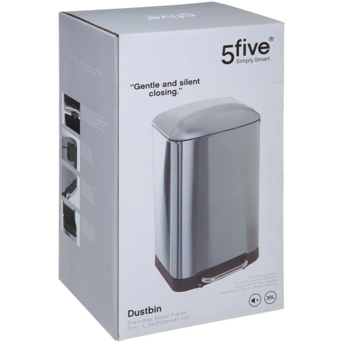 Cubo de basura ARIANE plateado metálico 30l | Cubo negro con pedal de cierre silencioso. Cubo/mango extraíble en la parte trasera. Fácil limpieza. | Cuida la higiene y limpieza de tu hogar con los accesorios y productos de limpieza adecuados, manteniendo tu casa limpia y tu entorno saludable. En la sección de Limpieza de las tiendas hôma encontrará todos los productos y útiles de limpieza que su hogar necesita. | Color: Plata | Medidas: 61×30.5x34cm | Material: PP, Metal | Capacidad: 30L | Marca: 5Five