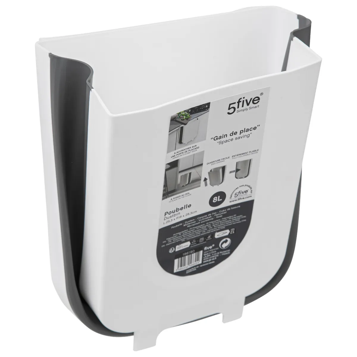Cubo De Basura Extendible 8L | 25.3x18x28.3cm | La funcionalidad en la cocina es esencial y comienza con las soluciones de almacenamiento para la cocina. Desde el carrito multiusos, al botellero o los cubos de basura y reciclaje, encuéntralo todo en homa.es | Color: Blanco, Gris | Medidas: 25.3x18x28.3cm | Material: Polipropileno | Capacidad: 8L | Marca: 5Five