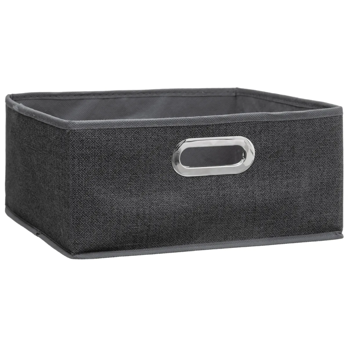Caja De Almacenaje Gris Oscuro | Caja de almacenaje en forma de cubo de la colección «Mixmodul». Una amplia selección de colores y formatos que se pueden combinar y utilizar en las estructuras de las estanterías de almacenaje de la misma gama. Su asa metálica hace aún más práctica la apertura de las cajas, que funcionan como cajones en los compartimentos de las estanterías. Conoce este y más artículos que tenemos disponibles para tu hogar. ¡Ordenar y organizar nunca ha sido tan fácil! Descubre la gama de almacenaje hôma | Medidas: 15x31x31cm | Material: Cartón, Polipropileno, Metal | Color: Gris oscuro | Marca: 5Five