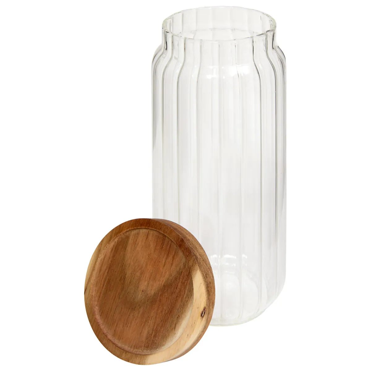 Tarro HARMONY con tapa 1L | ¿Sabías que tu cocina puede ser el lugar más feliz del mundo? Descubre nuestra gama de utensilios para una cocina llena de Happy Home Living. ¡Cocinar con los utensilios adecuados es mucho más fácil! | Color: Transparente | Medidas: 20.4x9cm | Material: Vidrio, Madera de Acacia | Capacidad: 1L