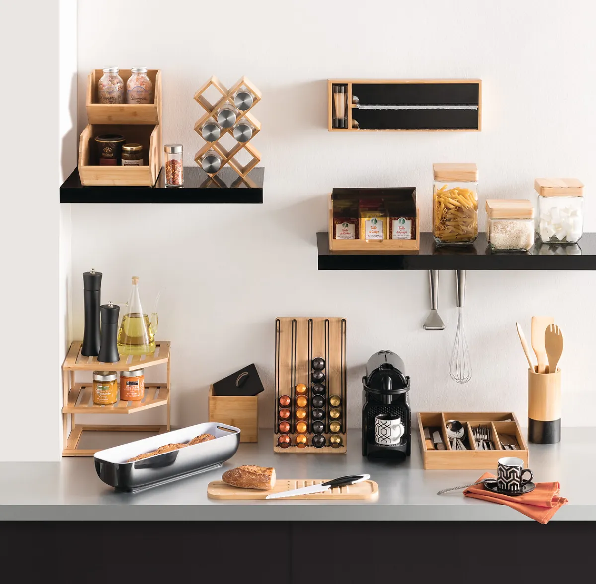 Cubertero Black Bambou | 25x34x4.3cm | La funcionalidad en la cocina es esencial y comienza con las soluciones de almacenamiento para la cocina. Desde el carrito multiusos, al botellero o los cubos de basura y reciclaje, encuéntralo todo en homa.es | Color: Negro | Medidas: 25x34x4.3cm | Material: Bambú | Colección: Black Bambou | Marca: 5Five