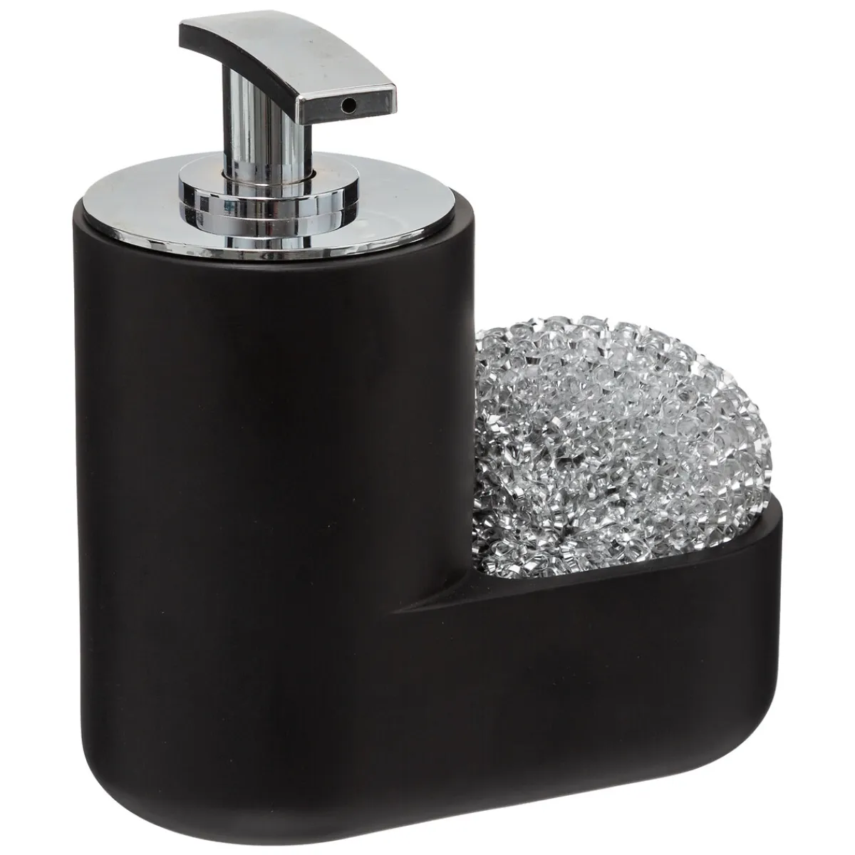 Dosificador Detergente Cocina Negro | La funcionalidad en la cocina es esencial y comienza con las soluciones de almacenamiento para la cocina. Desde el carrito multiusos, al botellero o los cubos de basura y reciclaje, encuéntralo todo en homa.es | Color: Negro | Medidas: 15×14.5×7.6cm | Material: Poliresina | Marca: 5Five