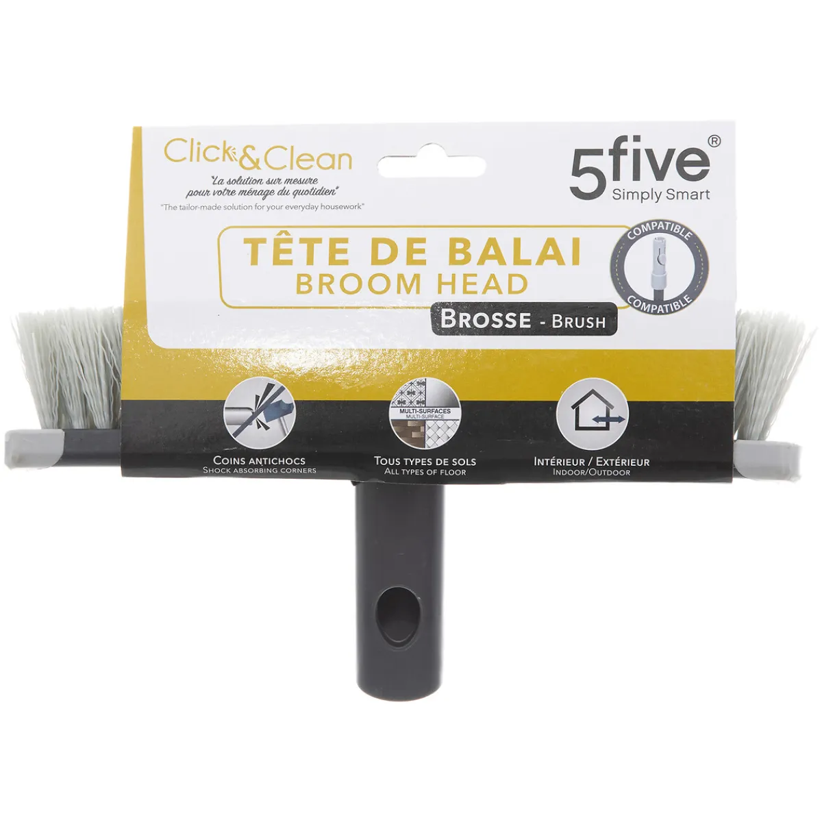 Cepillo Polipropileno Click Color Gris | Cabezal de escoba compatible con el mango telescópico de escoba Click & Clean. Las puntas de goma a los laterales del cabezal te permitirán barrer sin dañar tus muebles | Color: Gris | Medidas: 11×5.5x24cm | Material: Polipropileno | Marca: 5Five