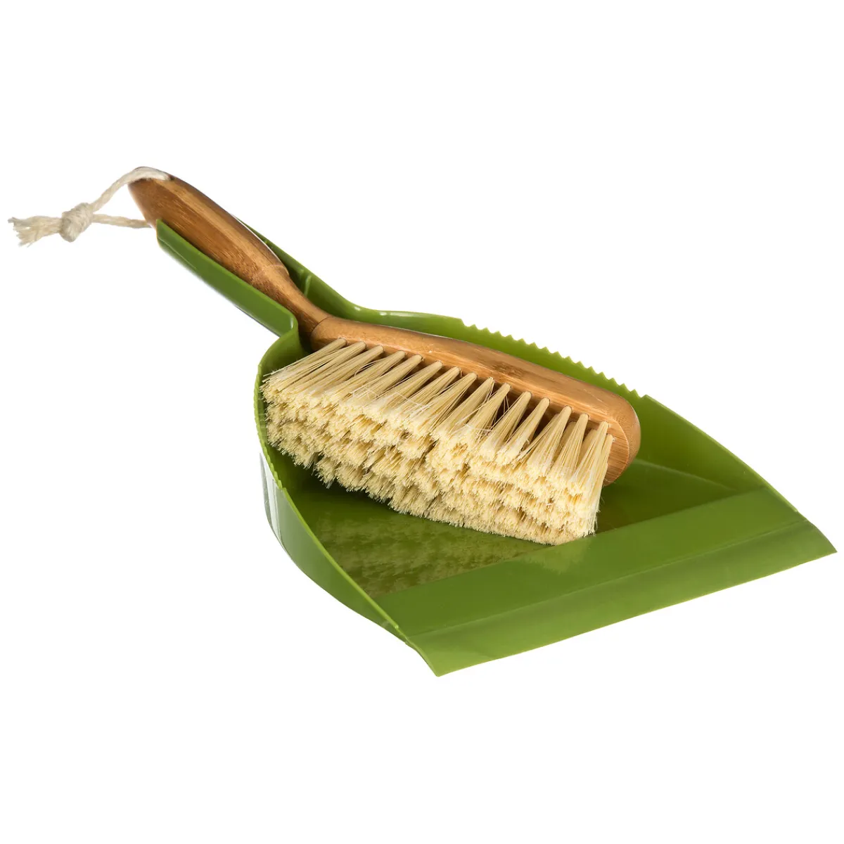 Recogedor De Mano Con Cepillo de Bambú | Cuida de la higiene y de la limpieza de tu hogar con los accesorios y productos adecuados, para que disfrutes siempre de un ambiente limpio y sano. En la sección de Limpieza de las tiendas hôma encontrarás todos los productos y utensilios de limpieza que tu hogar necesita | Color: Verde y Beige | Medidas: 22x7x32cm | Material: Bambú y Pvc | Colección: Gamme Bambou wood and clean | Marca: 5Five