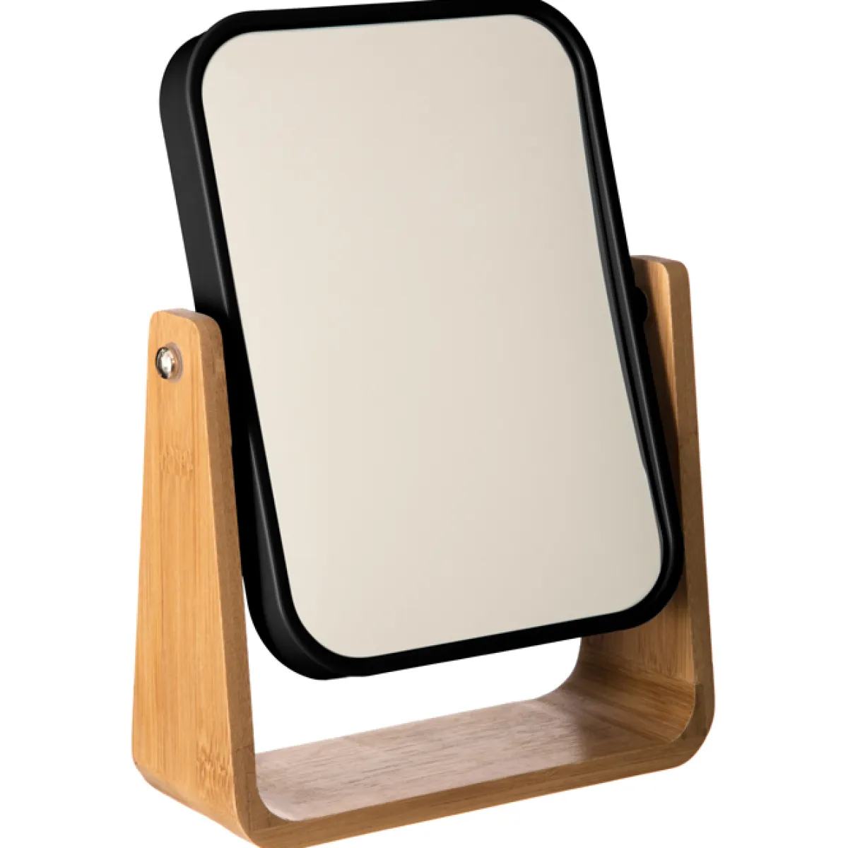 Espejo De Tocador Negro Con Soporte Bambú | El soporte de bambú le proporciona el toque natural a la decoración de tu espacio | Medidas: 16x6x22cm | Material: Poliestireno, Bambú, Vidrio | Color: Negro