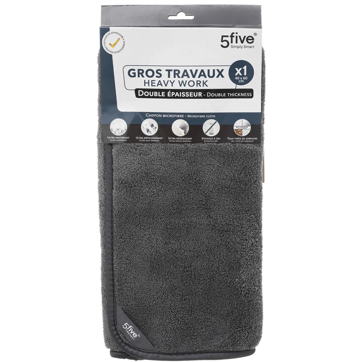 Bayeta De Microfibra Resistente 60x40cm | La microfibra seca atrapa el polvo y la suciedad como un imán | También puede utilizarse para limpiar superficies sucias y grasientas | El tratamiento específico aplicado a la fibra limita la proliferación de microorganismos y olores en el tejido, reduce 97% la actividad bacteriana en el tejido | Instrucciones de lavado: Puede lavarse en la lavadora a 40°C. No usar suavizante ni lejía | Color: Gris oscuro | Medidas: 60x40cm | Material: Microfibra | Marca: 5Five