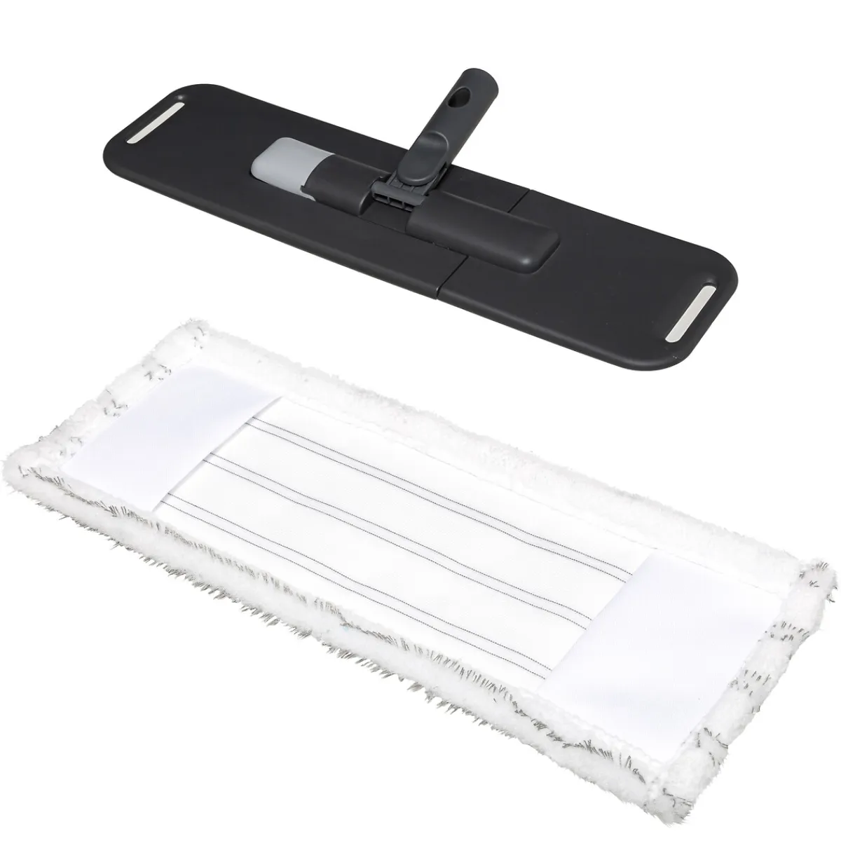 Mopa Microfibra Click | Cabezal de escoba descalcificador de microfibra compatible con el palo telescópico de la escoba Click & Clean | Removedor de polvo, grasas y líquidos | Los artículos se venden por separado | Color: Gris oscuro, Blanco | Medidas: 46x14x18cm | Material: Microfibra, Poliéster | Marca: 5Five