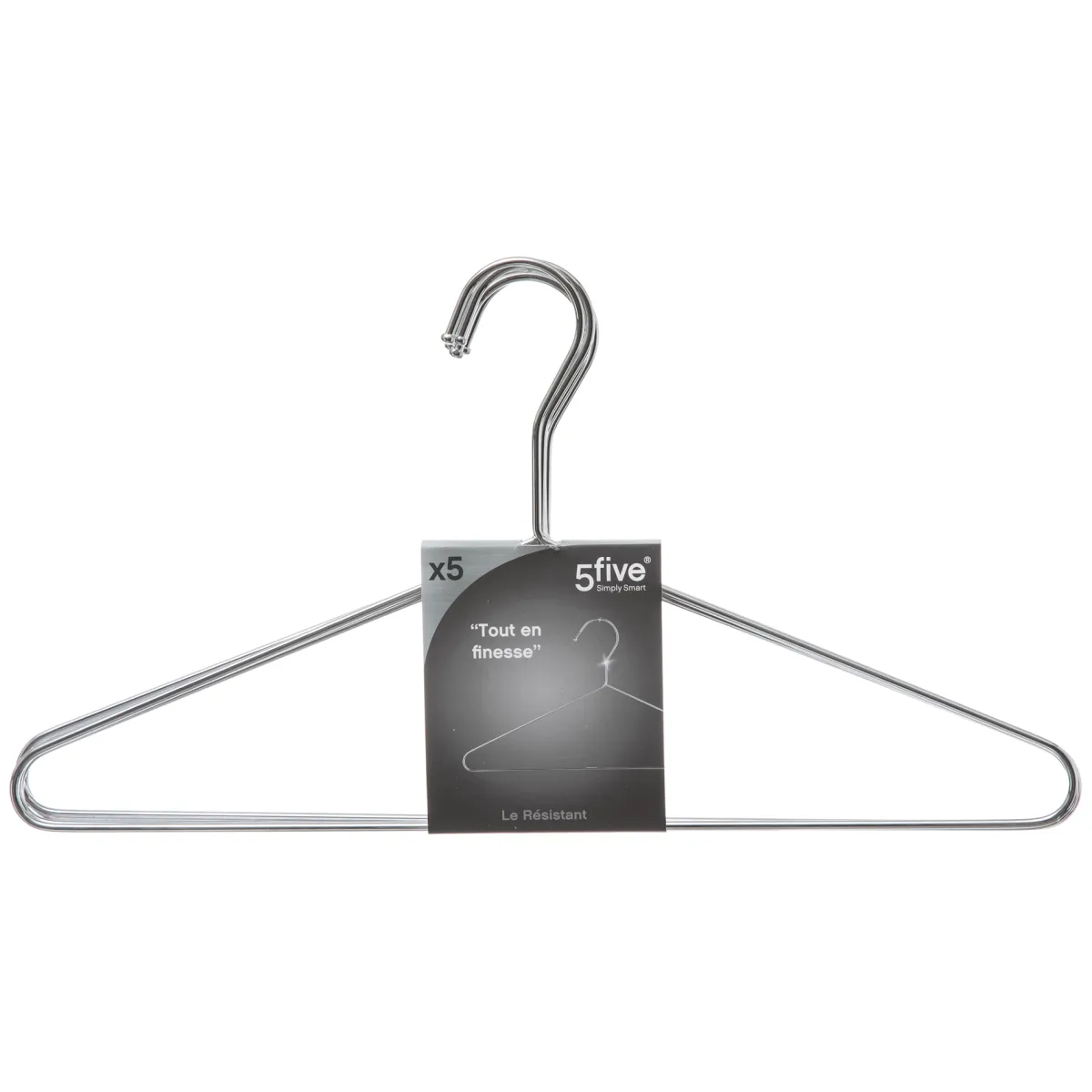 Juego De 5 Perchas De Metal | Conoce este y más artículos que tenemos disponibles para tu armario. Ordenar y organizar tus armarios y vestidores nunca fue tan fácil. Descubre la gama de almacenaje hôma | Medidas: 21cm | Material: Metal | Color: Plateado | Marca: 5Five