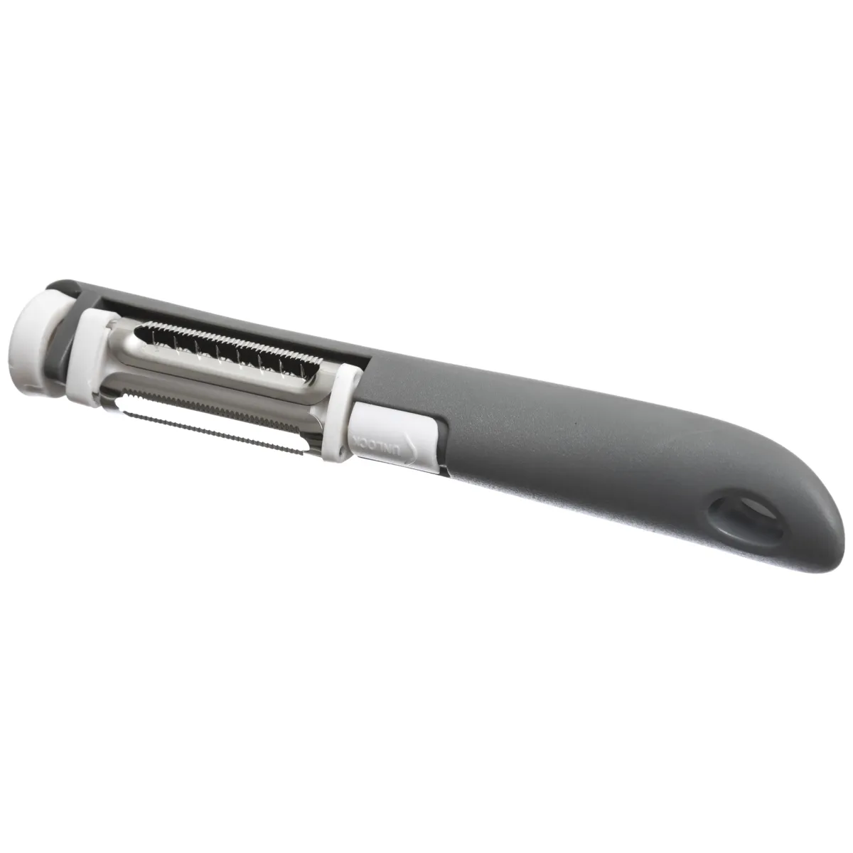 Pelador Con 3 Cuchillas Color Gris | Todo lo que tu mesa necesita está en homa.es, echa un vistazo a nuestra colección de vajillas, vasos, cubiertos, posavasos, soportes, etc. ¡Sirve con Happy Home Living, y todo sabrá mucho mejor! | Medidas: 20.3x3cm | Material: Abs, Acero Inoxidable | Color: Gris oscuro | Ref.440754