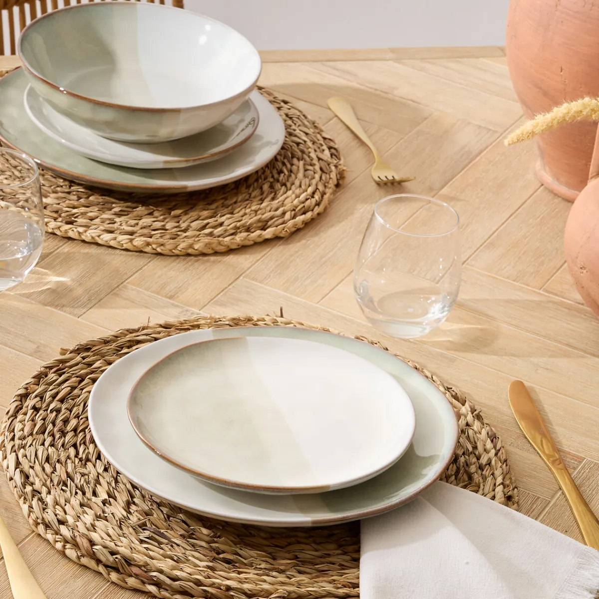 Plato postre SAHARA de cerámica 20.5cm | Todo lo que tu mesa necesita está en homastores.com . Descubre nuestra colección de vajillas, vasos, cubiertos, posavasos, soportes, piezas para servir. Sirve con Happy Home Living, ¡y todo sabrá mucho mejor! | Color: Verde y Beige | Medidas: 2,1×20,5×20,5cm | Material: Gres | Marca: 5Five
