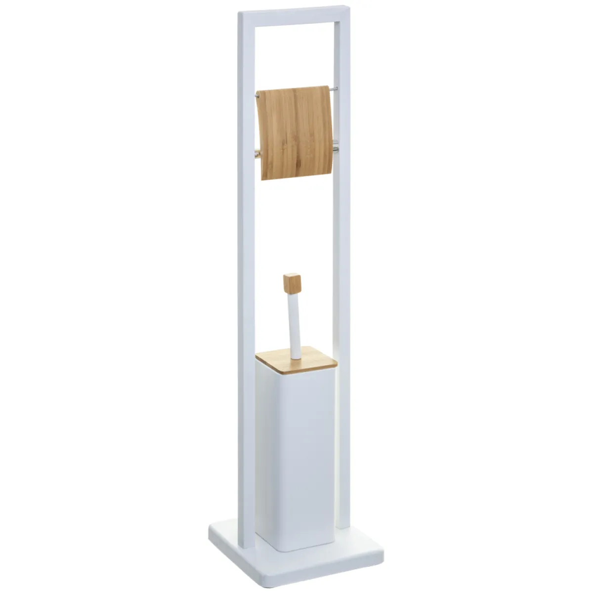 Escobillade Baño Con Soporte Metálico Y Bambú | Los accesorios y la organización del baño son esenciales para que tus rutinas más personales te traigan todo el bienestar que te mereces. ¡Conoce nuestra colección de accesorios para el baño! | Color: Blanco, Beige | Medidas: 80x20x20cm | Material: Metal, Bambú | Colección : Jja Bamboo Furniture | Marca: 5Five
