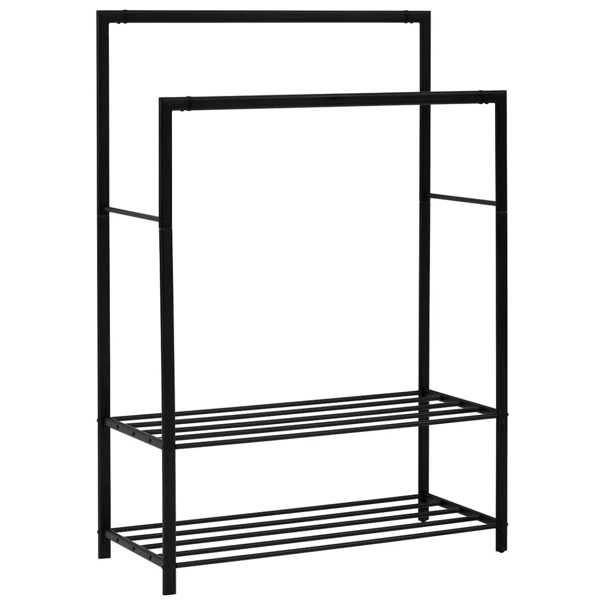 Perchero doble ATHENA negro con 2 baldas | 170x50x117 | Capacidad: 120kg y 16 Pares | Conoce este y más artículos que tenemos disponibles para tu closet . Almacenar y organizar tus armarios y roperos nunca fue tan fácil. Descubre la gama de Organización hôma | Color: Negro | Medidas: 170x50x117 | Material: Metal | Marca: 5Five