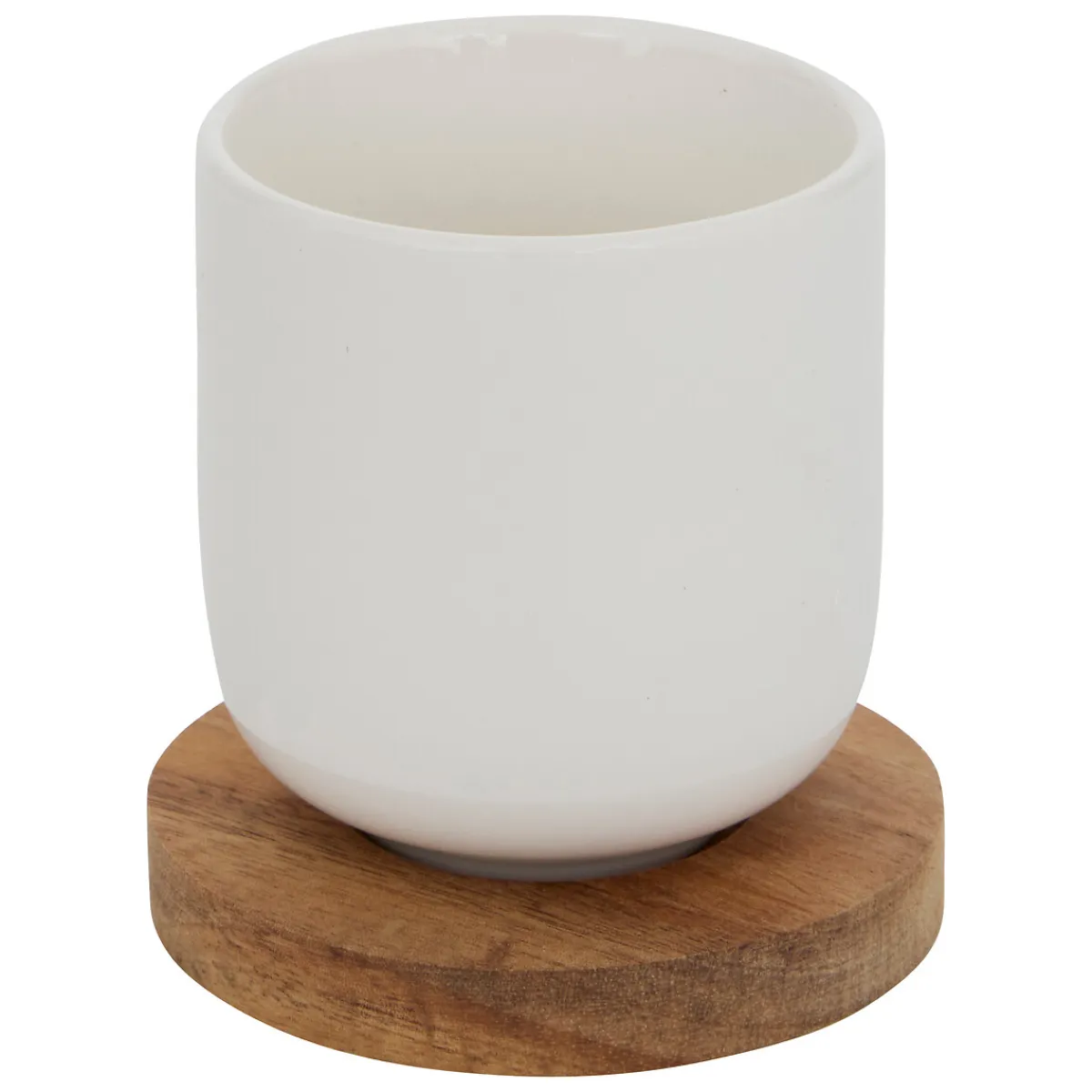 Juego de 4 tazas con base ELEGANCE 10cl | Todo lo que tu mesa necesita está en homastores.com . Descubre nuestra colección de vajillas, vasos, cubiertos, posavasos, soportes, piezas para servir. Sirve con Happy Home Living, ¡y todo sabrá mucho mejor! | Color: Blanco y Marrón | Medidas: 17x7x25cm | Material: Madera de Acacia y Porcelana | Capacidad: 10cl | Marca: 5Five