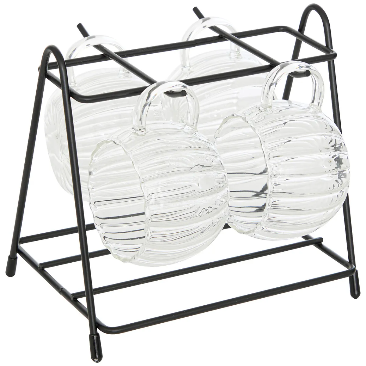Juego de 4 tazas con soporte 18cl | Todo lo que tu mesa necesita está en homastores.com . Descubre nuestra colección de vajillas, vasos, cubiertos, posavasos, soportes, piezas para servir. Sirve con Happy Home Living, ¡y todo sabrá mucho mejor! | Color: Transparente y Negro | Medidas: 15,8x15x17cm | Material: Metal y Vidrio| Marca: 5Five