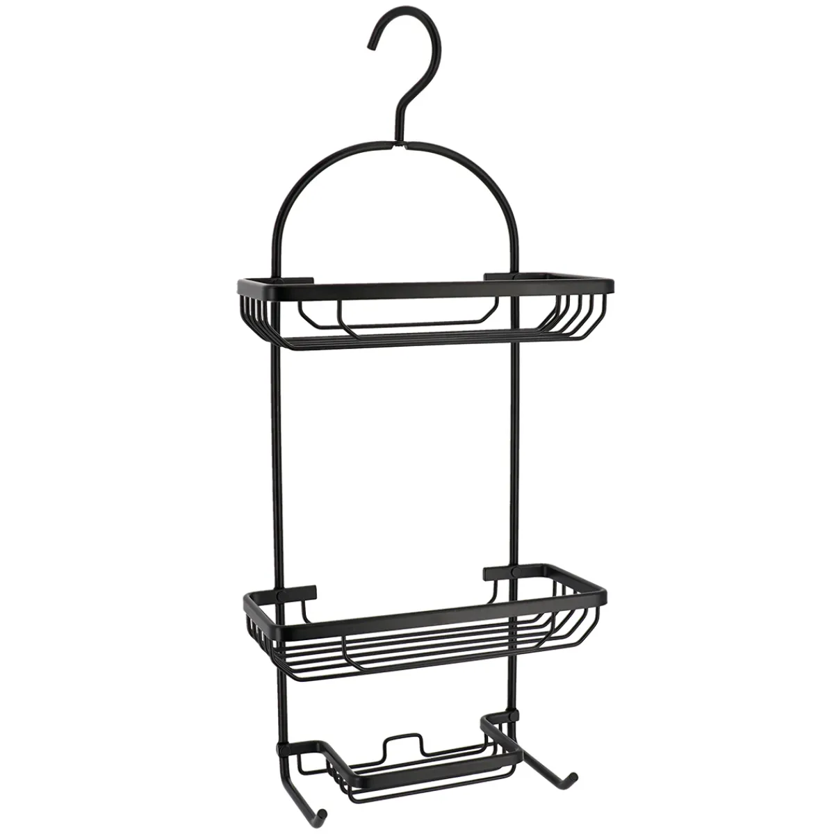 Accesorios De Baño>Soporte De Ducha Negro Con 2 Ganchos