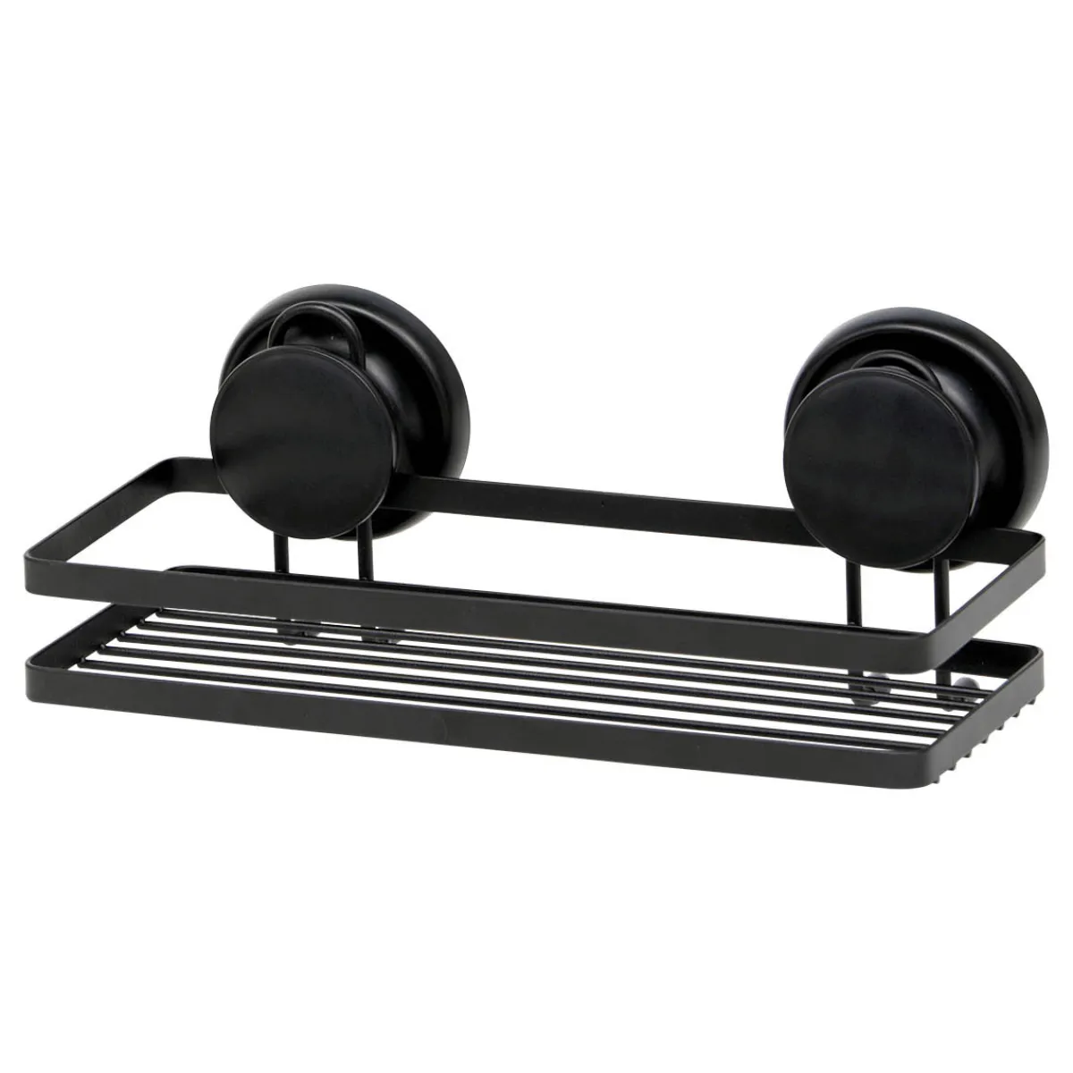 Soporte Metálico Rectangular Con Ventosas | Los accesorios y la organización del baño son esenciales para que tus rutinas más personales te traigan todo el bienestar que te mereces. ¡Conoce nuestra colección de accesorios para el baño! | Color: Negro | Medidas: 9x19x27cm | Material: Metal