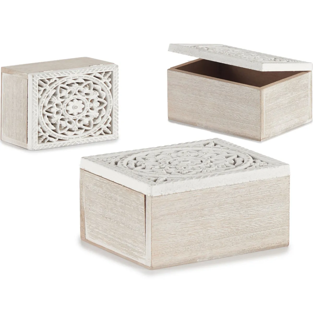 Accesorios|Estilo Étnico>Caja Decorativa Madera Blanca 11x16x8Cm