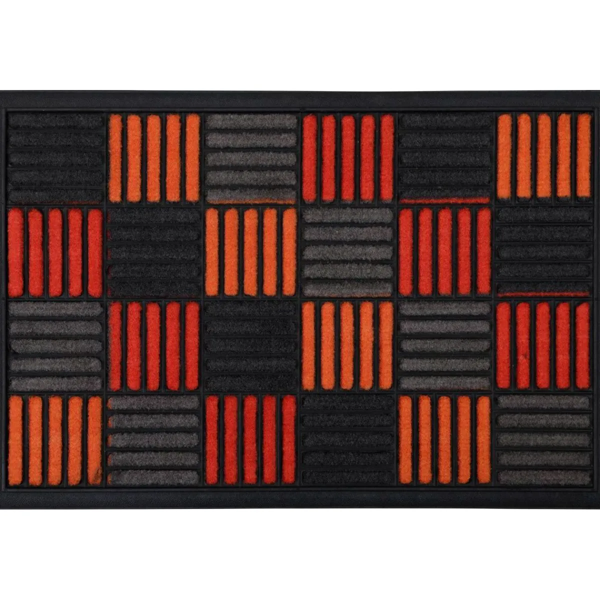 Alfombra De Entrada Nailon Cuadrados Naranja | 40x60cm | Cuida de la higiene y de la limpieza de tu hogar con los accesorios y productos adecuados, para que disfrutes siempre de un ambiente limpio y sano. En la sección de Limpieza de las tiendas hôma encontrarás todos los productos y utensilios de limpieza que tu hogar necesita | Color: Naranja, Gris Oscuro | Medidas: 40×0.8x60cm