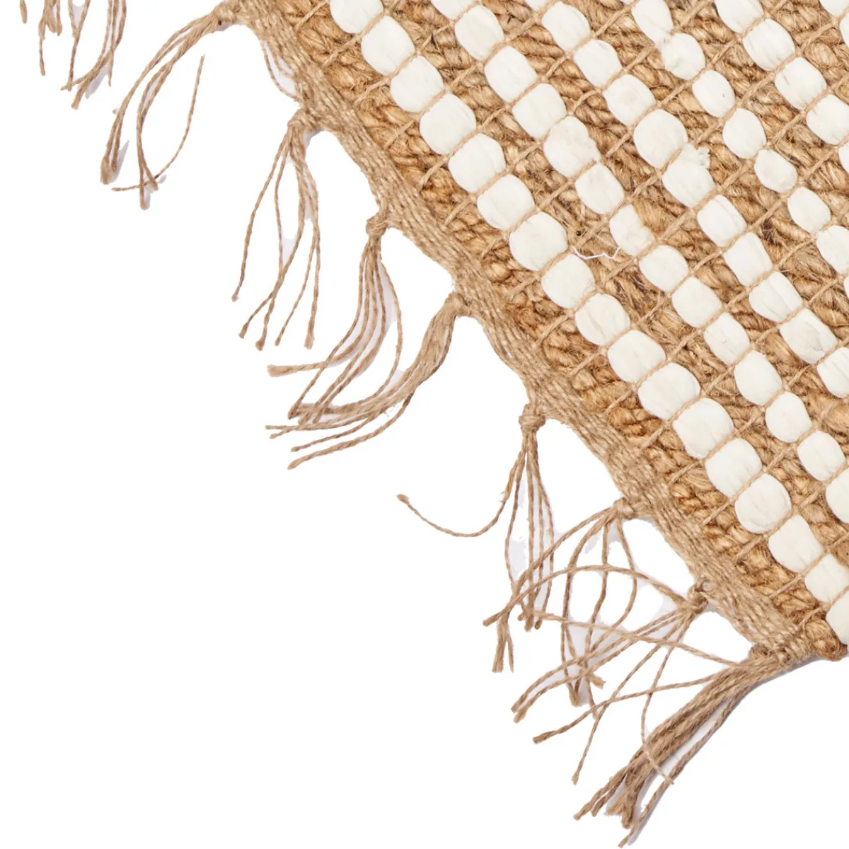 Alfombra rayas blancas 70x140cm | Encuentra en homastores.com todo tipo de alfombras para la casa. Alfombras para el salón, la habitación, alfombras redondas, etc. Tus pies te lo agradecerán y el espacio ganara una nueva dimensión con las propuestas de decoración para el piso. | Color: Natural | Medidas: 70x140cm | Material: Yute y Algodón