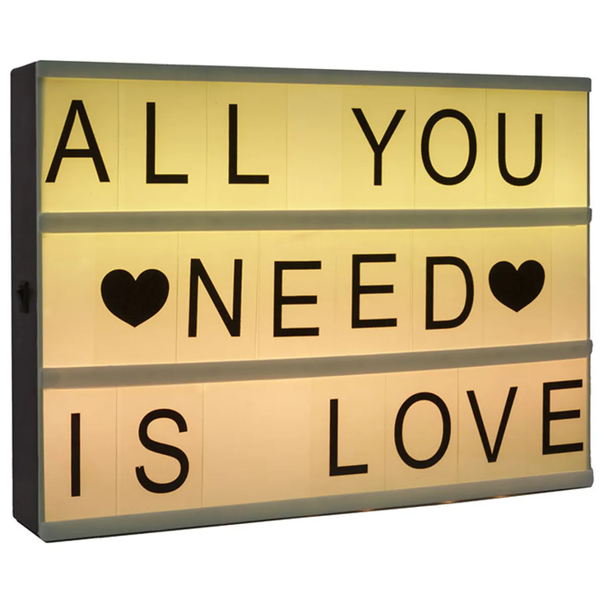 Caja De Luz Con Mensaje A4 | 22x6x30cm | Cuadro luminoso Medidas A4, con luces de diferentes colores (rosa, amarillo, azul y verde) | Incluye 82 letras, números y símbolos para que puedas personalizar tu mensaje | Funciona con pilas (3xAA LR6 / no incluidas) | En hôma encontrarás los mejores complementos decorativos para tu hogar | Color: Multicolor | Medidas: 22x6x30cm | Material: Poliestireno | Marca: Atmosphera