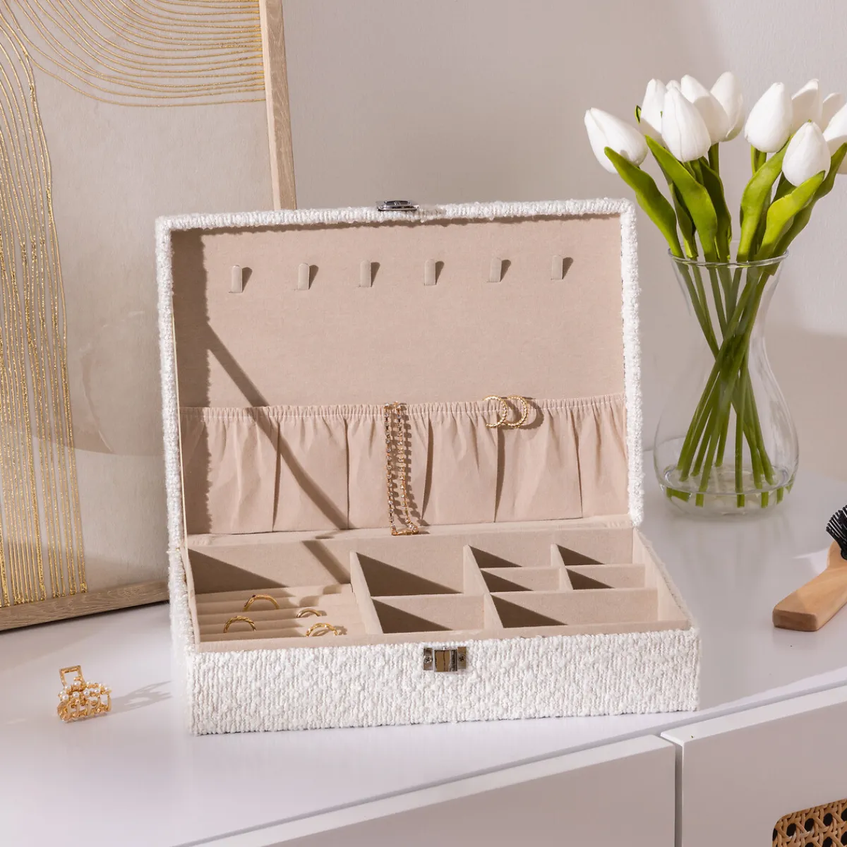 Joyero LOE blanco | En hôma encontrarás los mejores complementos de decoración para tu hogar. Descubre cuál te gusta más… ¡es tuyo! | Color: Blanco | Medidas: 7x19x28cm | Material: Mdf y Poliéster | Marca: Atmosphera
