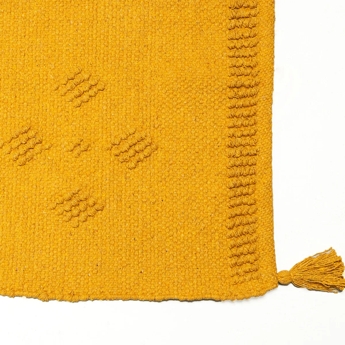 Alfombra Tropical Boudoir Ocre Con Borlas 120x160cm | ¡En homa.es encontrarás alfombras para toda la casa! Alfombras de salón, alfombras de dormitorio, alfombras redondas,etc. Tus pies te lo agradecerán y tu espacio cobrará una nueva dimensión con estas propuestas de decoración para el suelo | Color: Ocre | Medidas: 120x160cm | Marca: Atmosphera