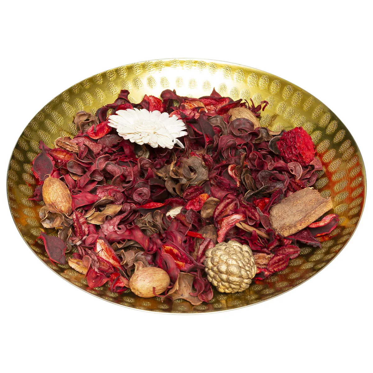 Popurrí De Frutos Rojos Con Plato Metálica Dorado | En hôma encontrarás una gran variedad de ambientadores que refrescarán tu hogar. | Material: Flores secas, Metal | Aroma: Frutos Rojos | Marca: Atmosphera
