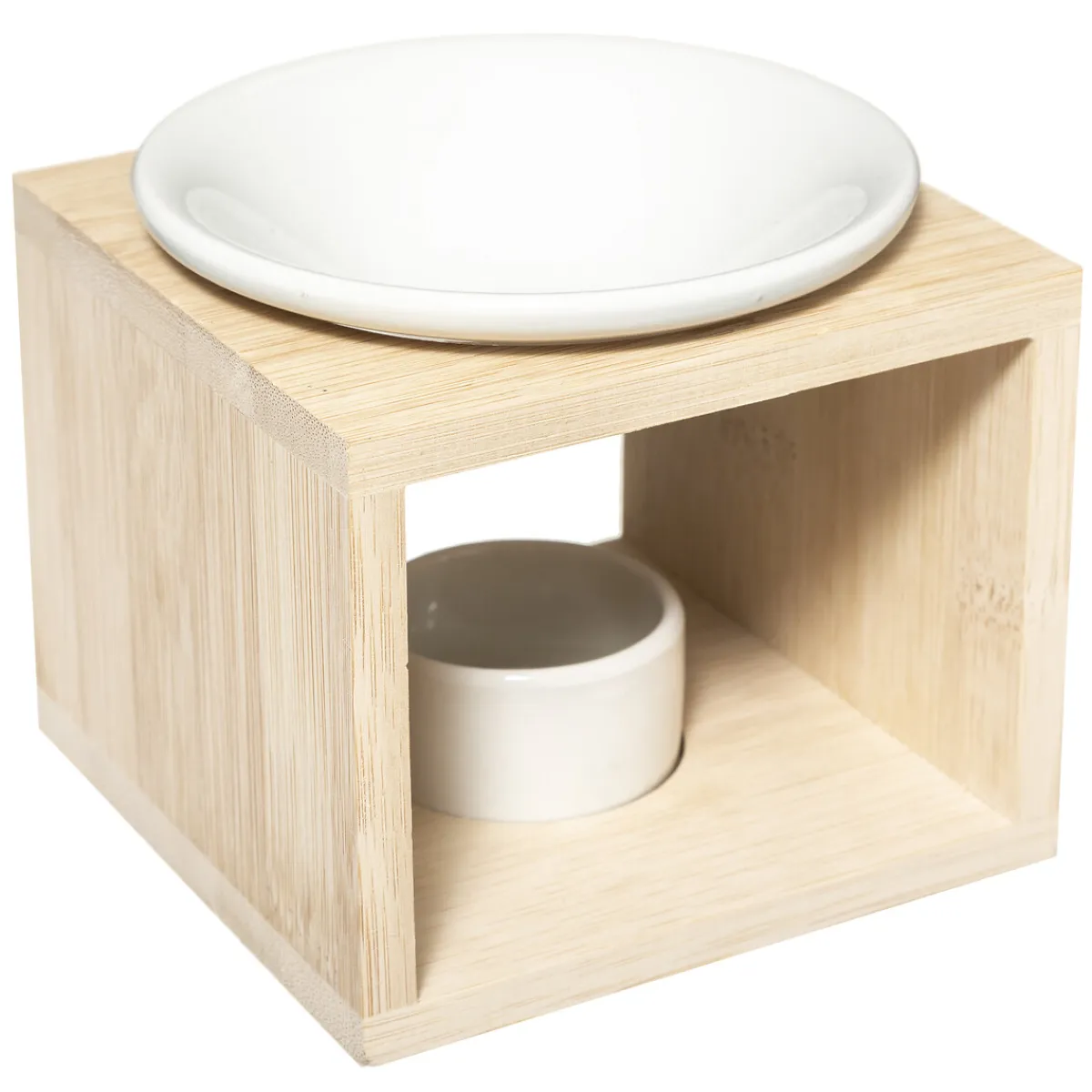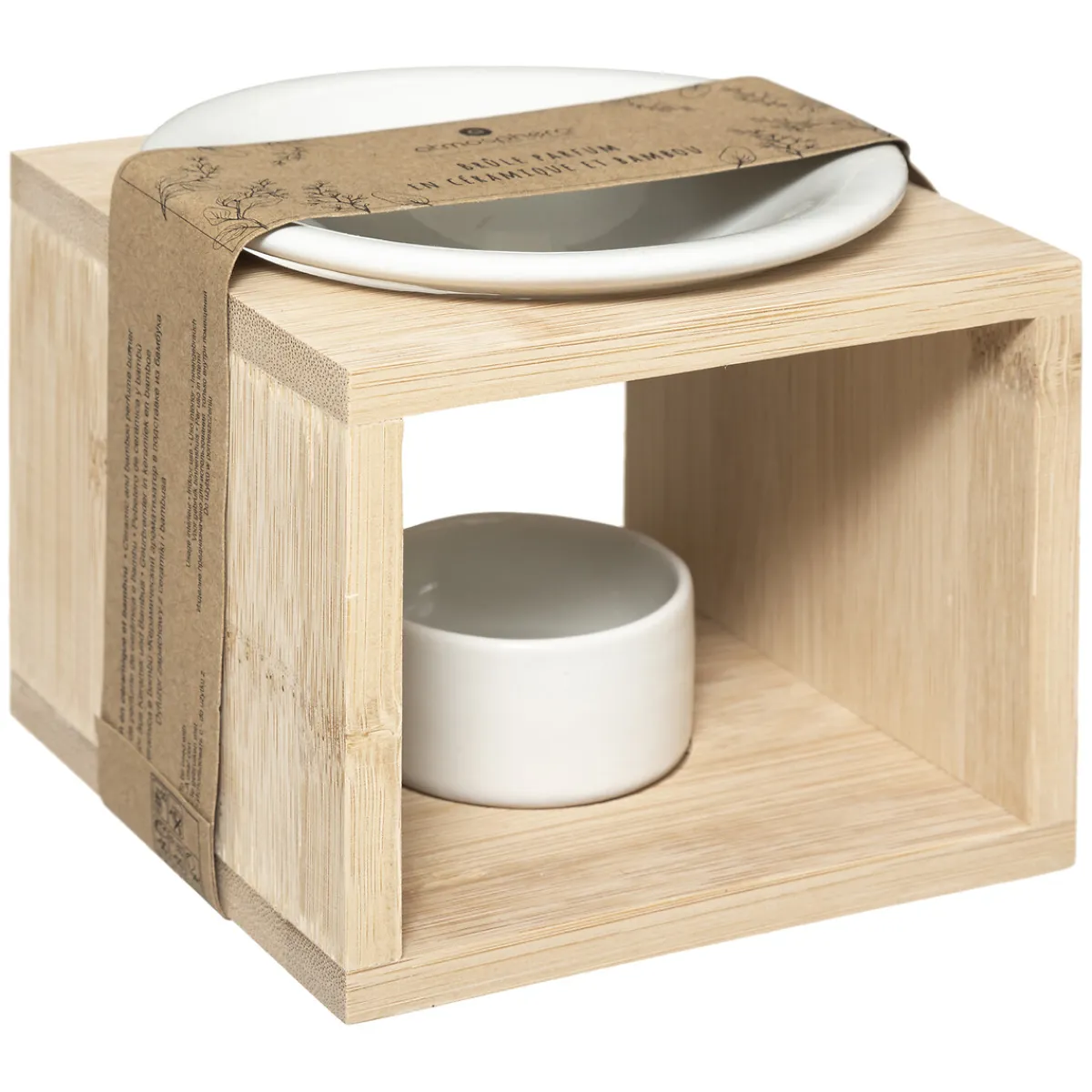 Quemador De Bambú Y Cerámica | En hôma encontrarás una gran variedad de ambientadores que refrescarán tu hogar | Color: Blanco y Beige | Medidas del marco: 11.5×11.5×9.5cm | Material: Cerámica y Bambú | Marca: Atmosphera