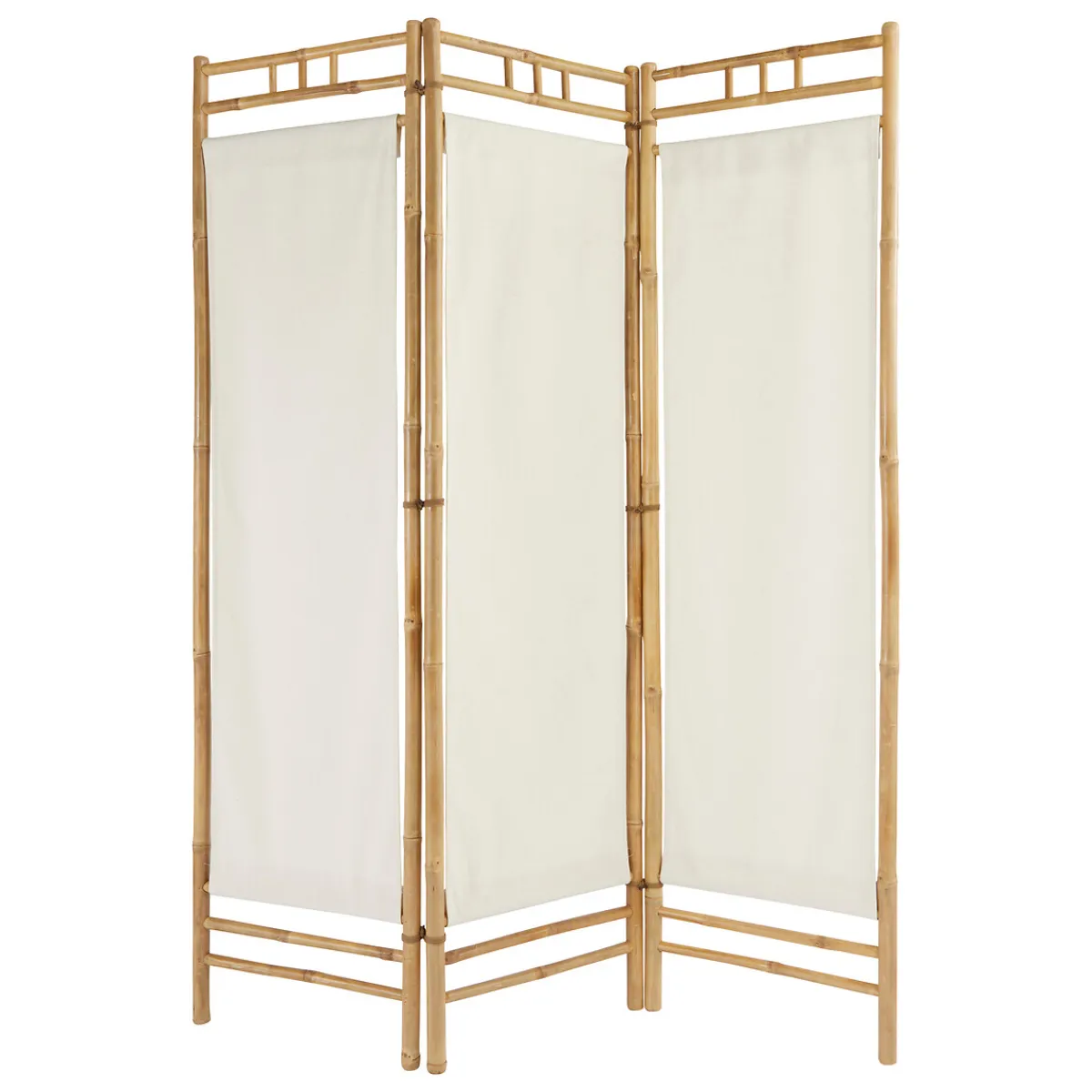 Biombo KAEL de bambú 135.5x170cm | Descubre este y otros biombos que tenemos para ti.Los muebles Hôma están pensados para Home Happy Living. Los mejores artículos de decoración, están aquí. | Color: Blanco y beige | Medidas: 135.5x170cm | Material: Bambú y tela | Marca: Atmosphera