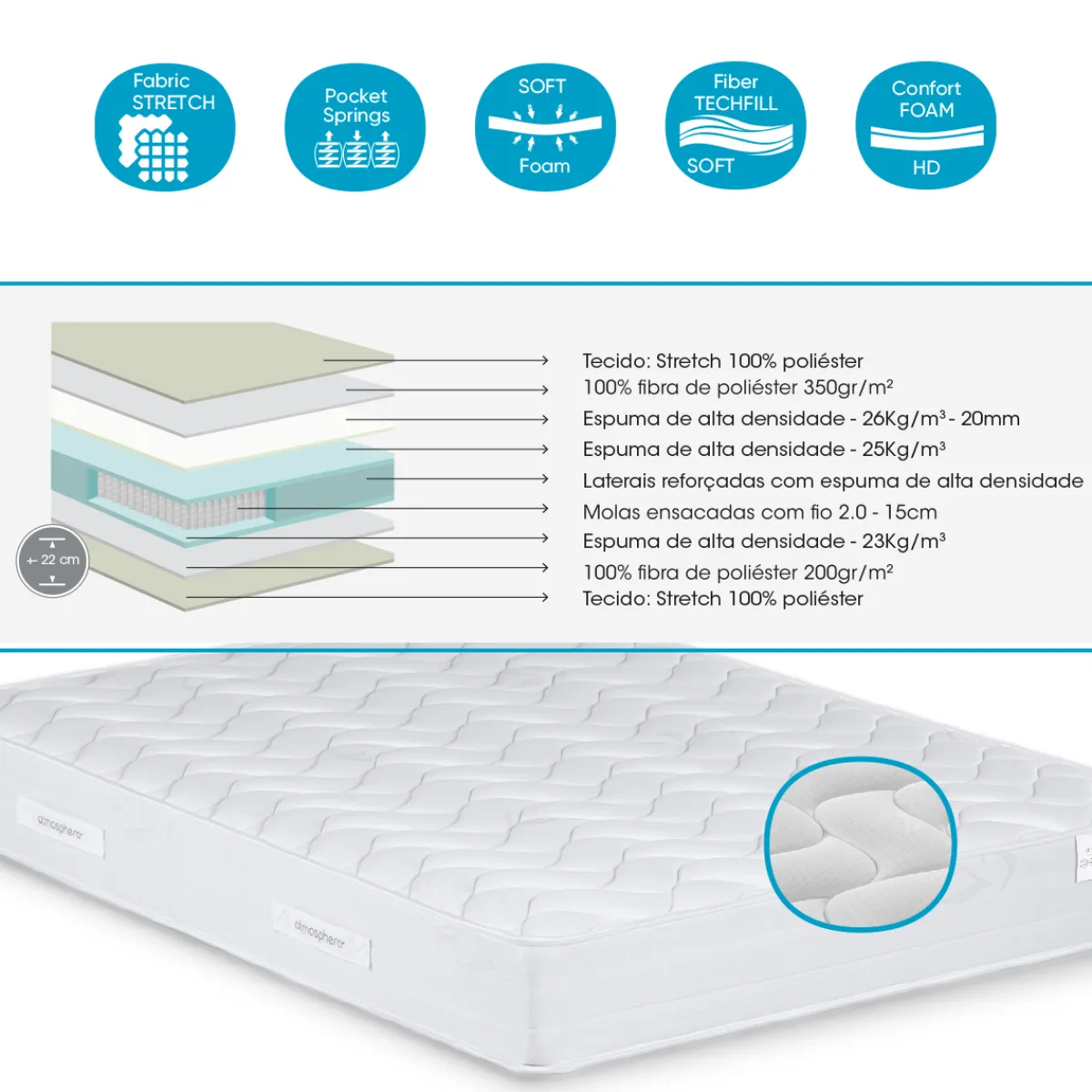 Colchón Monet 160x200cm | 100% Poliéster | 350g/m2 | Espuma de alta densidad | El colchón Monet está compuesto por un núcleo de muelles ensacados de 15cm en un cajón de espuma de alta densidad y espuma viscoelástica. El núcleo de muelles ensacados se adapta a todos los puntos de la morfología de cada persona y ofrece una respuesta individualizada a los movimientos del cuerpo durante el descanso, proporcionando así un descanso más ergonómico. La espuma viscoelástica proporciona un mayor soporte a todas las partes del cuerpo, distribuyendo el peso uniformemente y adaptándose a las curvas del cuerpo. Funda superior confeccionada en tela elástica 100% poliéster y compuesta por fibra suave antialérgica de 350g/m2. Monet contribuye a una posición ideal para dormir y ayuda a alinear correctamente la columna vertebral, permitiendo que permanezca en una posición neutra. ¡Encuentre aquí todo lo necesario para un sueño tranquilo! Descubra nuestra colección de textiles para el hogar con propuestas de ropa de cama muy confortables: edredones, fundas, colchas, sábanas, almohadas para dormir, etc. | Color: Blanco | Medidas: 23x160x200cm | Material: Poliéster, Espuma | Marca: Atmosphera | Se recomienda esperar 72h antes de usar