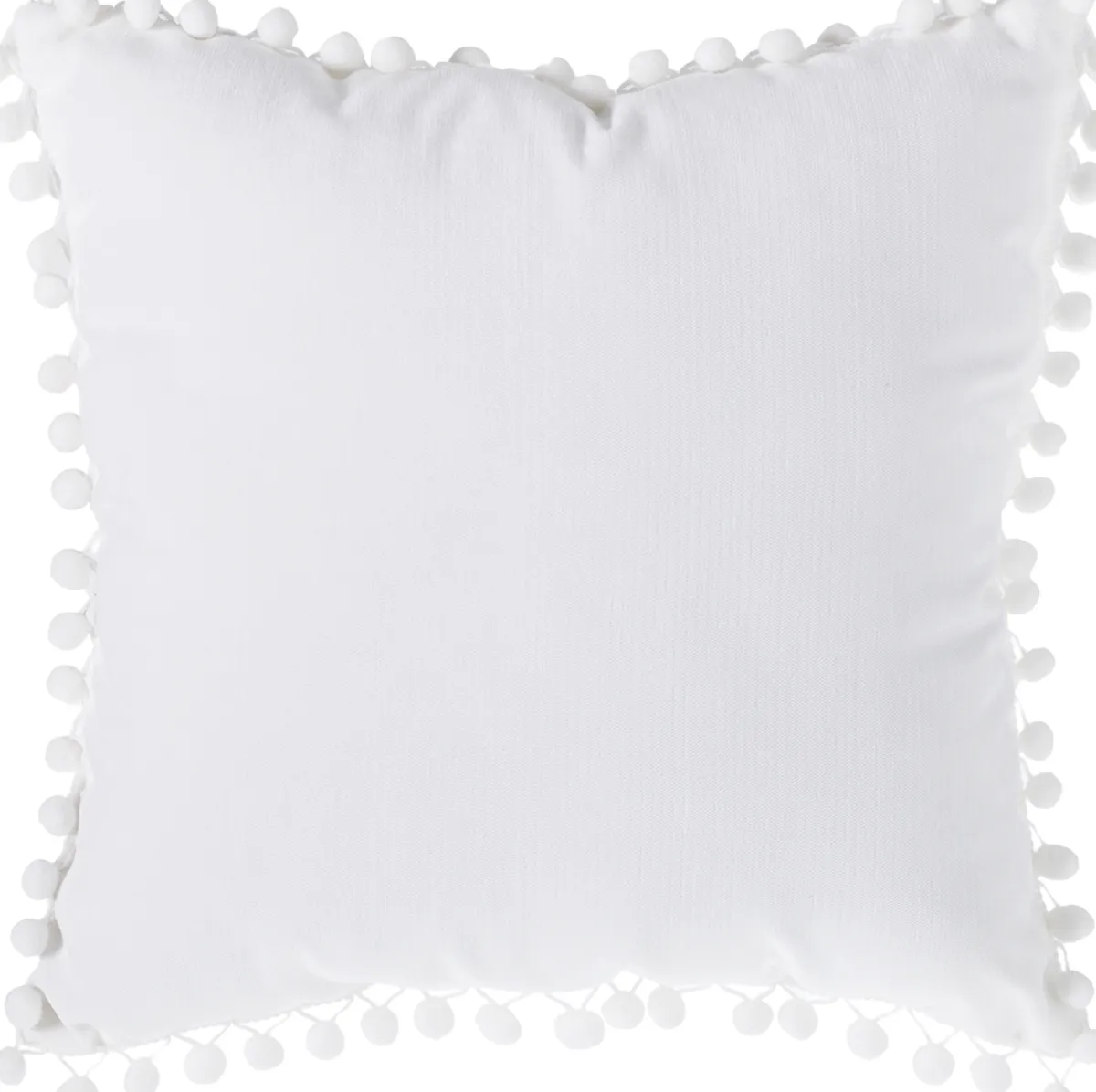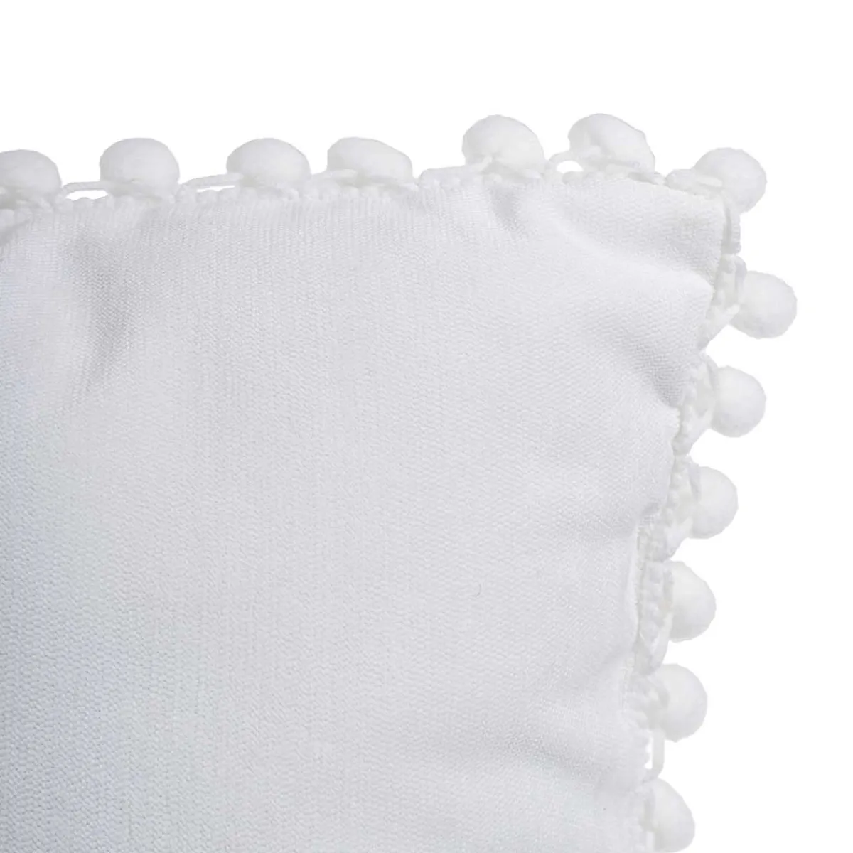 Cojín Blanco Con Pompones 40x40cm | La colección textil hôma reúne propuestas únicas para personalizar tu hogar. Desde cojines decorativos y fundas de cojín hasta las mantas más confortables, ¡vive en tu hogar con toda comodidad! | Color: Blanco | Medidas: 40x40cm | Material: Poliéster, Nailon | Marca: Atmopshera