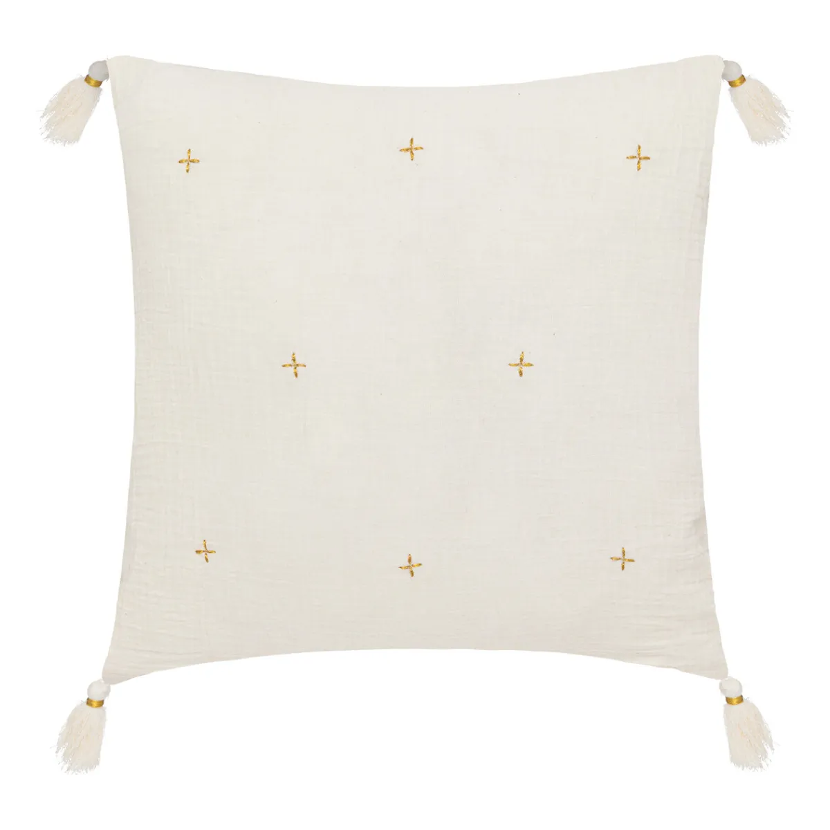Almofada Winter Light Gaze Marfim Com Cruzes Douradas 40x40cm | A coleção hôma têxtil reune propostas únicas para personalizar a sua casa. Das almofadas decorativas e capas de almofadas às mantas mais confortáveis, viva a sua casa com todo o conforto ! | Cor: Marfim, Dourado | Dimensão: 40x40cm | Material: Algodão, Poliéster | Marca: Atmosphera