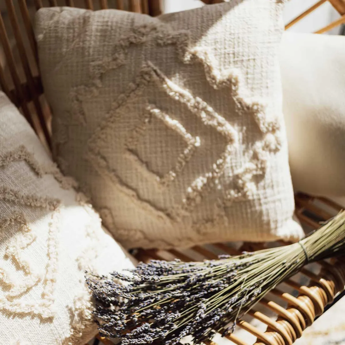 Cojín Inca Marfil 40x40cm | Funda Removible | La colección textil hôma reúne propuestas únicas para personalizar tu hogar. Desde cojines decorativos y fundas de cojín hasta las mantas más confortables, ¡vive en tu hogar con toda comodidad! | Color: Marfil | Medidas: 40x40cm | Material: Algodón, Poliéster | Marca: Atmosphera