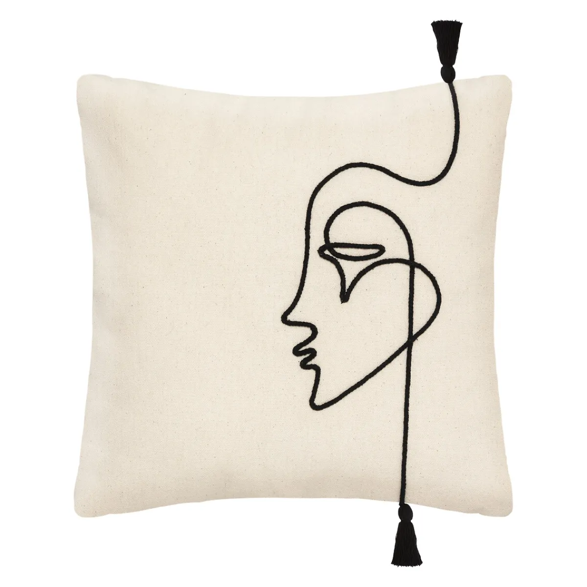 Funda De Cojín Visage Marfil Y Negro 40x40cm | La colección textil hôma reune propuestas únicas para personalizar tu casa. Desde cojines decorativos y fundas de cojín hasta las mantas más confortables, ¡ Vive en tu hogar con comodidad ! | Color: Marfil, Negro | Medidas: 40x40cm | Material: Poliéster | Marca: Atmosphera