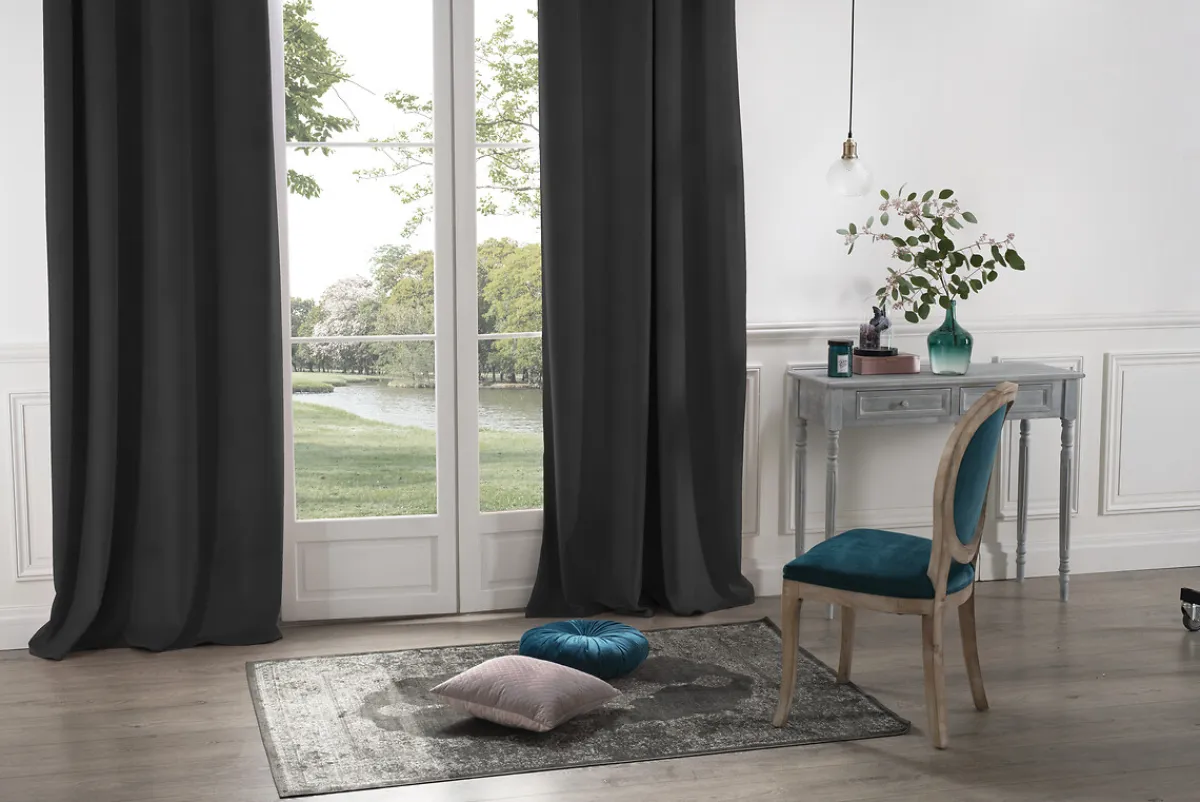 Cortina Opaca Gris 140x260cm | Tipo de fijación: 8 anillas | Decora y controla la intensidad de la luz en tu hogar con la colección de cortinas hôma. Diversos estampados y tejidos originales que podrás utilizar en tus cortinas del salón, en las cortinas de tu dormitorio o en tu cocina. También tenemos disponibles diferentes barras para que puedas escoger la más adecuada a tus necesidades | Color: Gris Oscuro | Medidas de la cortina: 140x260cm | Marca: Atmosphera