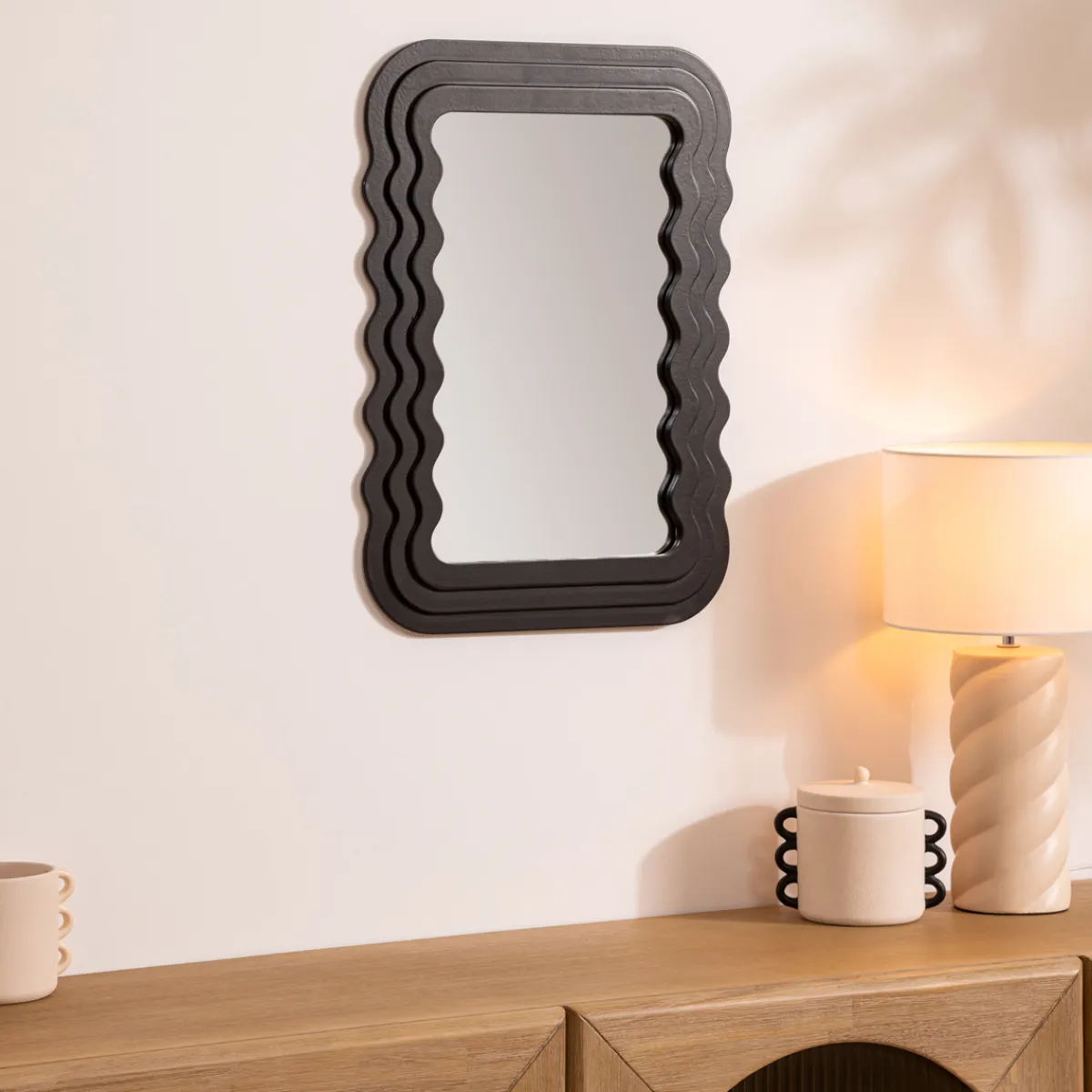 Espejo de Pared Kelly Mdf | Descubre este y otros espejos decorativos hôma para tu hogar. | Color: Negro | Medidas: 40×1.5x55cm | Material: Mdf/Vidrio | Marca: Atmosphera