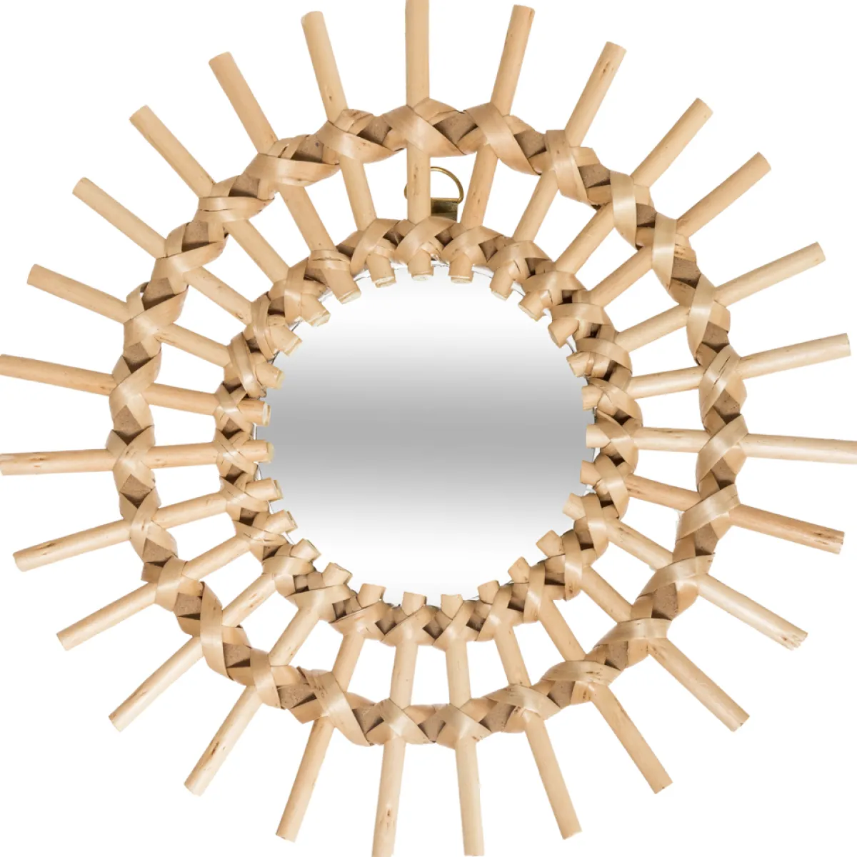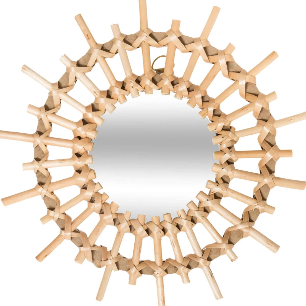 Juego De 3 Espejos Decorativos Sol De Ratán 28cm | Descubre este y otros espejos decorativos hôma para tu hogar | Color: Beige | Medidas Espejo: 28×2.5x28cm | Material: Ratán, Mimbre y Vidrio | Marca: Atmosphera