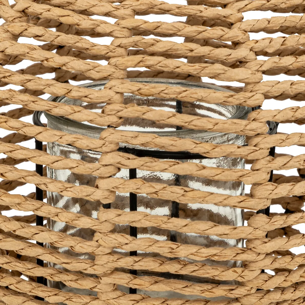 Farol De Rafia Beige Con Portavelas De Vidrio Maty | Descubra nuestra gama de farolillos decorativos. La mejor decoración del hogar es un farol. | Color: Beige | Medidas: 18x15cm | Material: Rafia, Metal, Vidrio | Marca: Atmosphera
