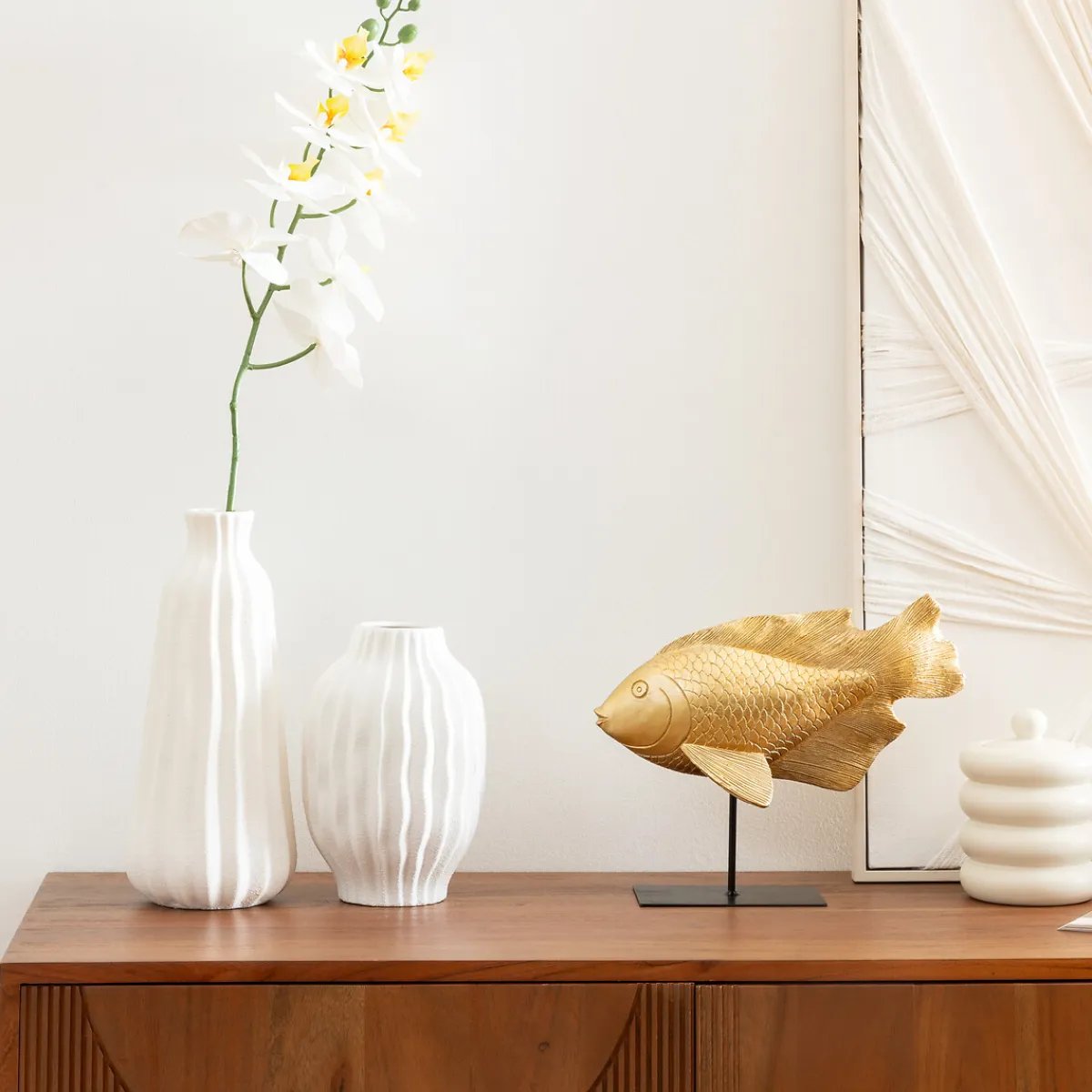 Jarrón FERNAN de cerámica 30cm | Encuentra este y otros jarrones para decorar tu hogar. Los mejores artículos de decoración están en hôma. | Color: Blanco | Medidas: D.28x10cm | Material: Cerámica | Marca: Atmosphera