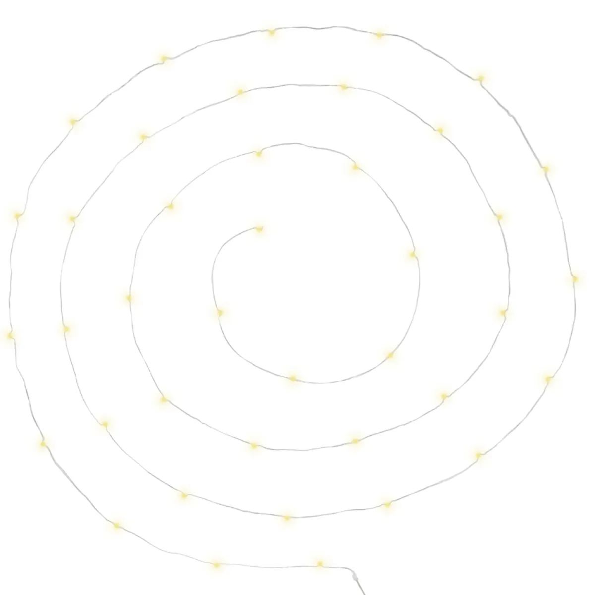Guirnalda Con 40 Microleds 400cm | Cable plateado con luz led blanco cálido | Pilas, 2 x AA / LR6 no incluidas | Descubre este y otros artículos de iluminación de hôma para iluminar y decorar tu hogar | Color: Plateado | Medidas: 395cm | Material: Cobre, Pvc | Marca: Atmosphera
