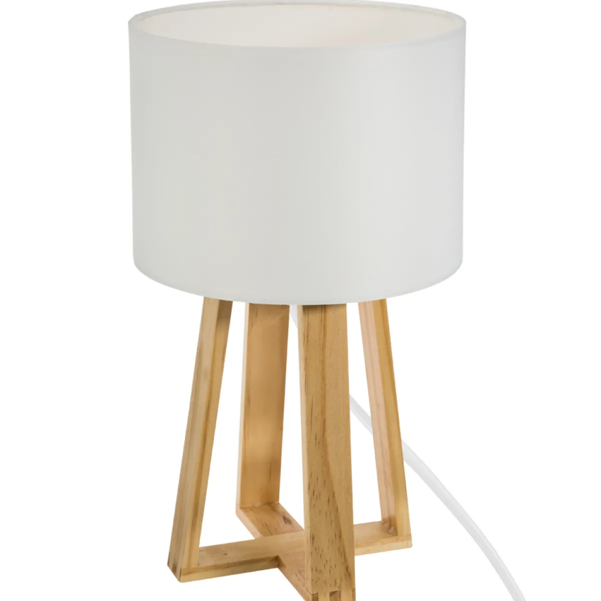Lámpara De Mesa Molu Blanca Con Base de Madera | Bombilla No Incluida | Longitud del Cable: 150cm | Portalámparas: E27 | Potencia Máxima: 25W | Descubre este y otros artículos de iluminación de hôma para iluminar y decorar tu hogar | Color: Blanco, Marrón | Medidas: 34.5x20cm | Material: Madera de Pino, Algodón, Poliéster | Marca: Atmosphera